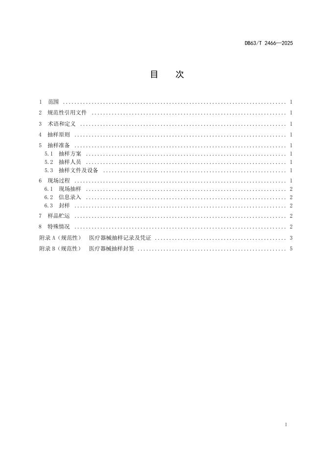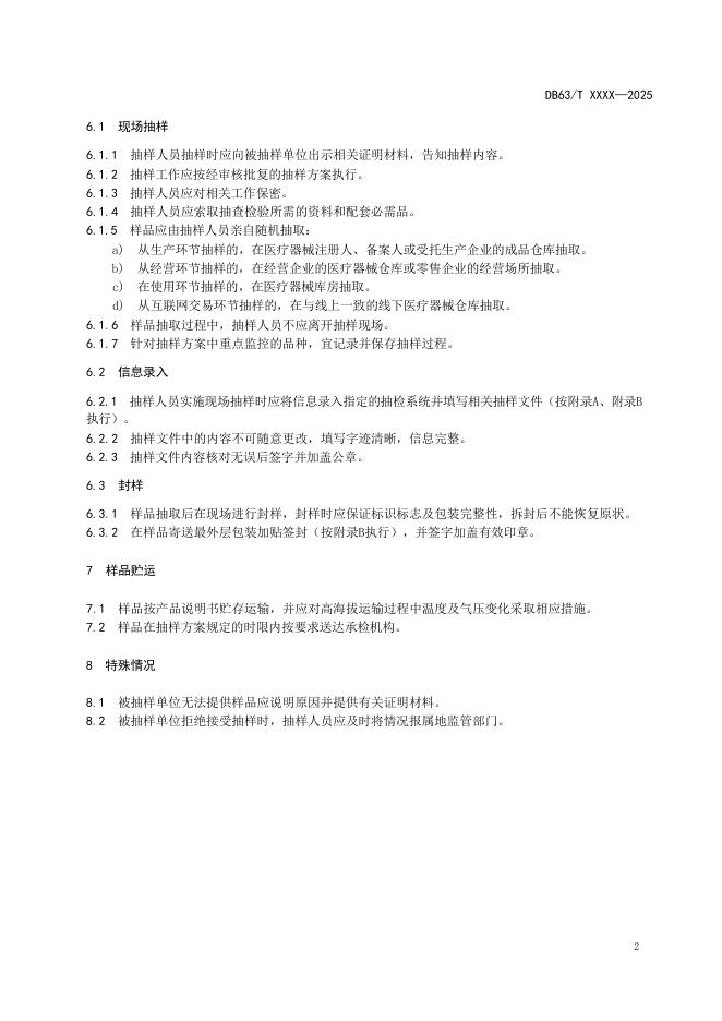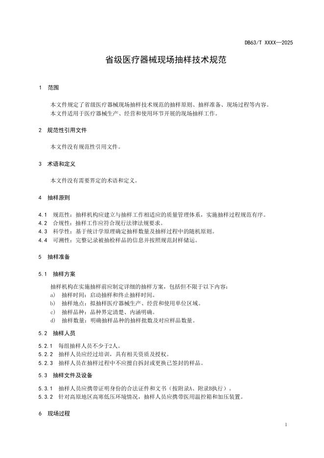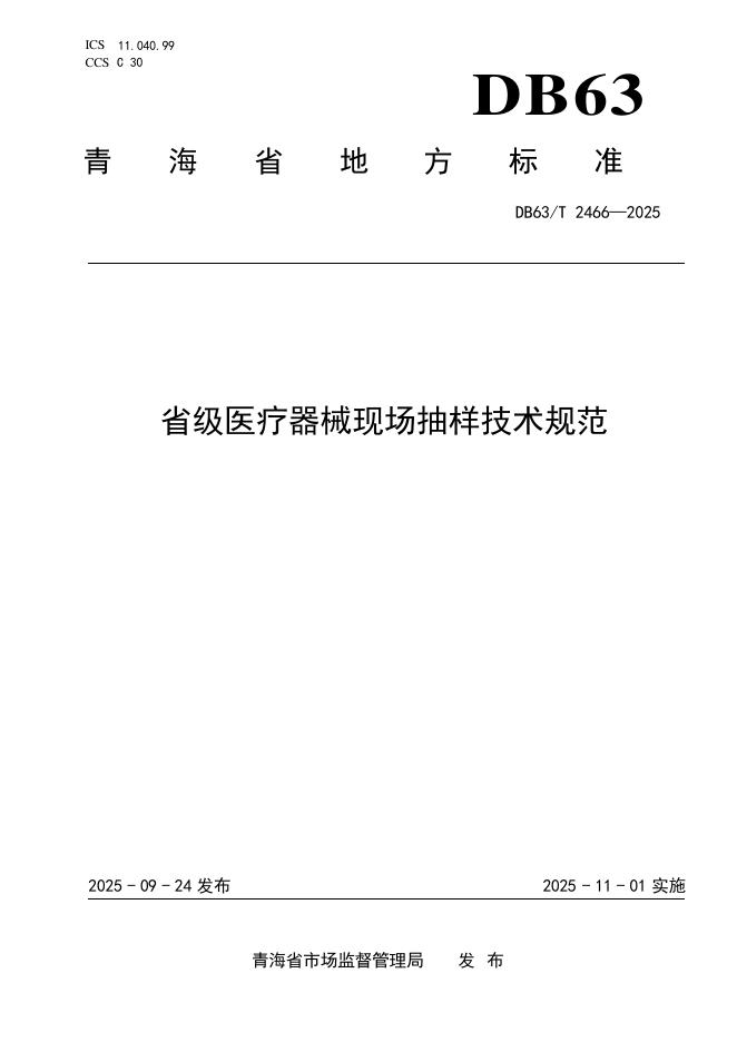 DB63/T 2466-2025 省级医疗器械现场抽样技术规范