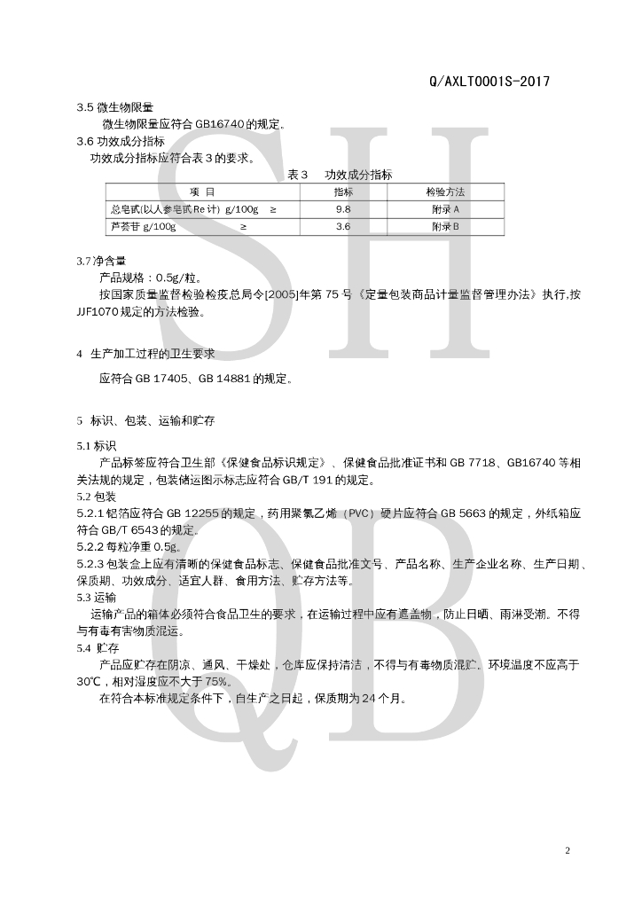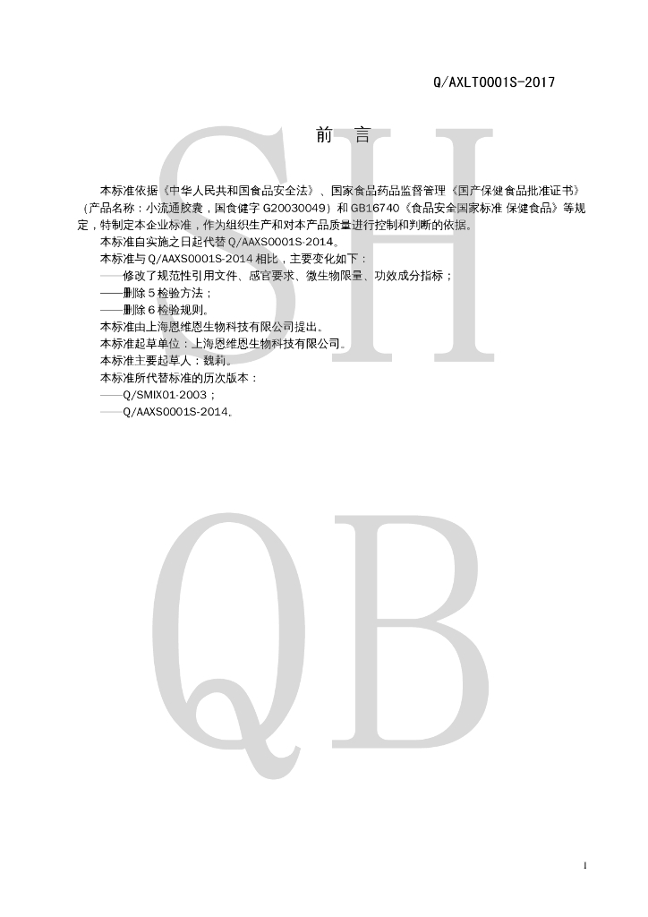Q/AXLT 0001S-2017 小流通牌小流通胶囊