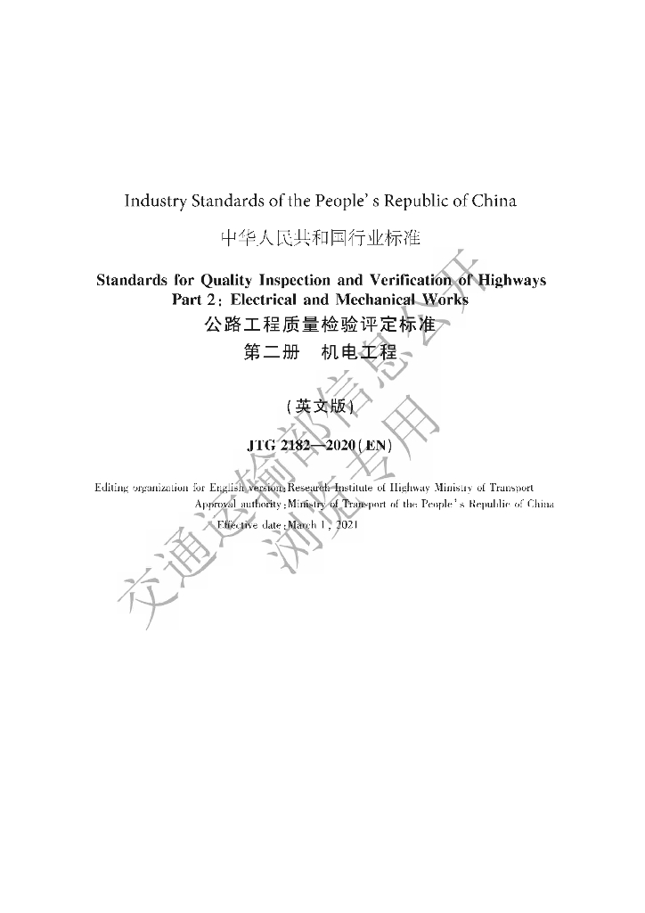JTG 2182-2020(EN) 公路工程质量检验评定标准 第二册 机电工程(英文版)