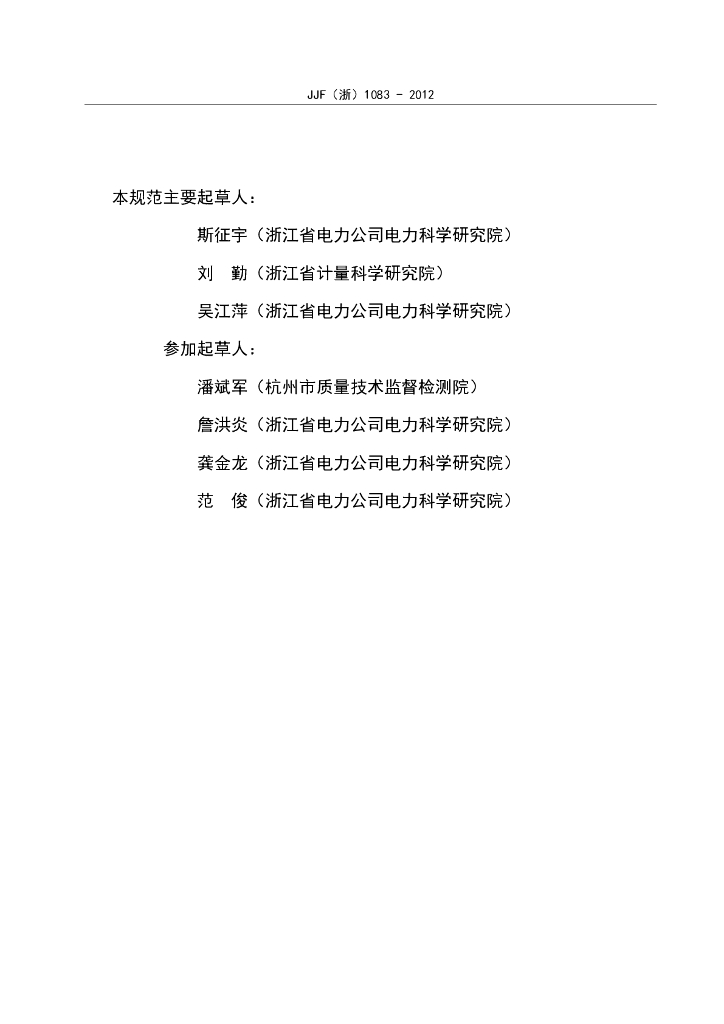 斯征宇(浙江省电力公司电力科学研究院)、刘勤(浙江省计量科学研究院)、吴江萍(浙江省电力公司电力科学研究院)、潘斌军(杭州市质量技术监督检测院)、詹洪炎(浙江省电力公司电力科学研究院)、龚金龙(浙江省电力公司电力科学研究院)、范俊(浙江省电力公司电力科学研究院)