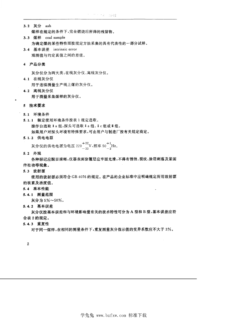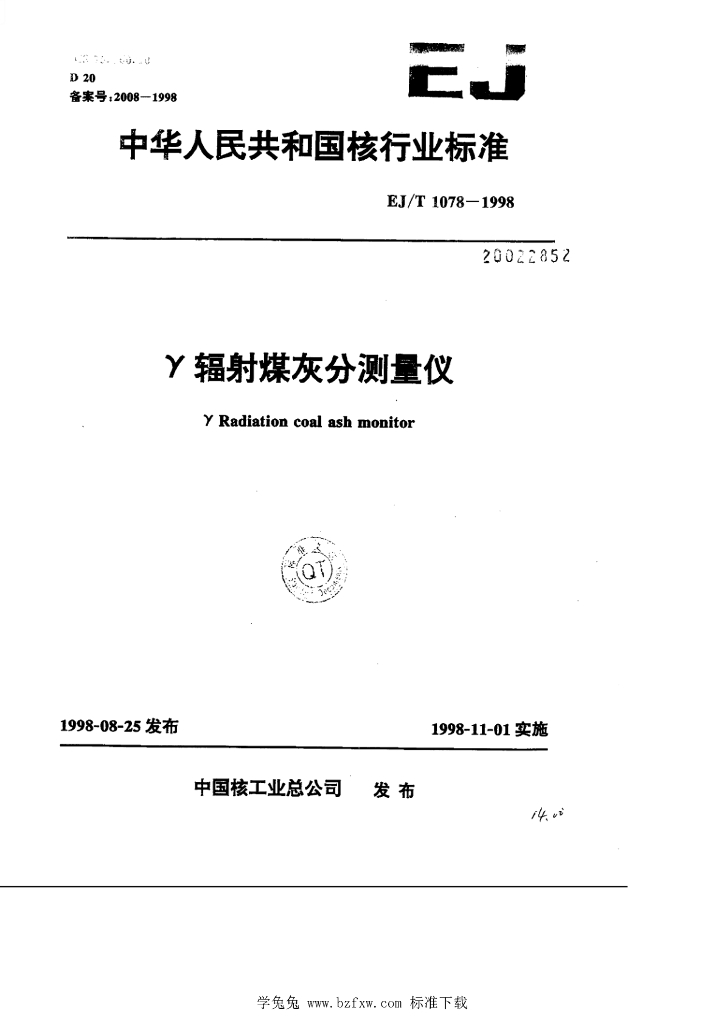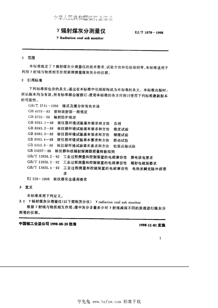 EJ/T 1078-1998 γ辐射煤灰分测量仪