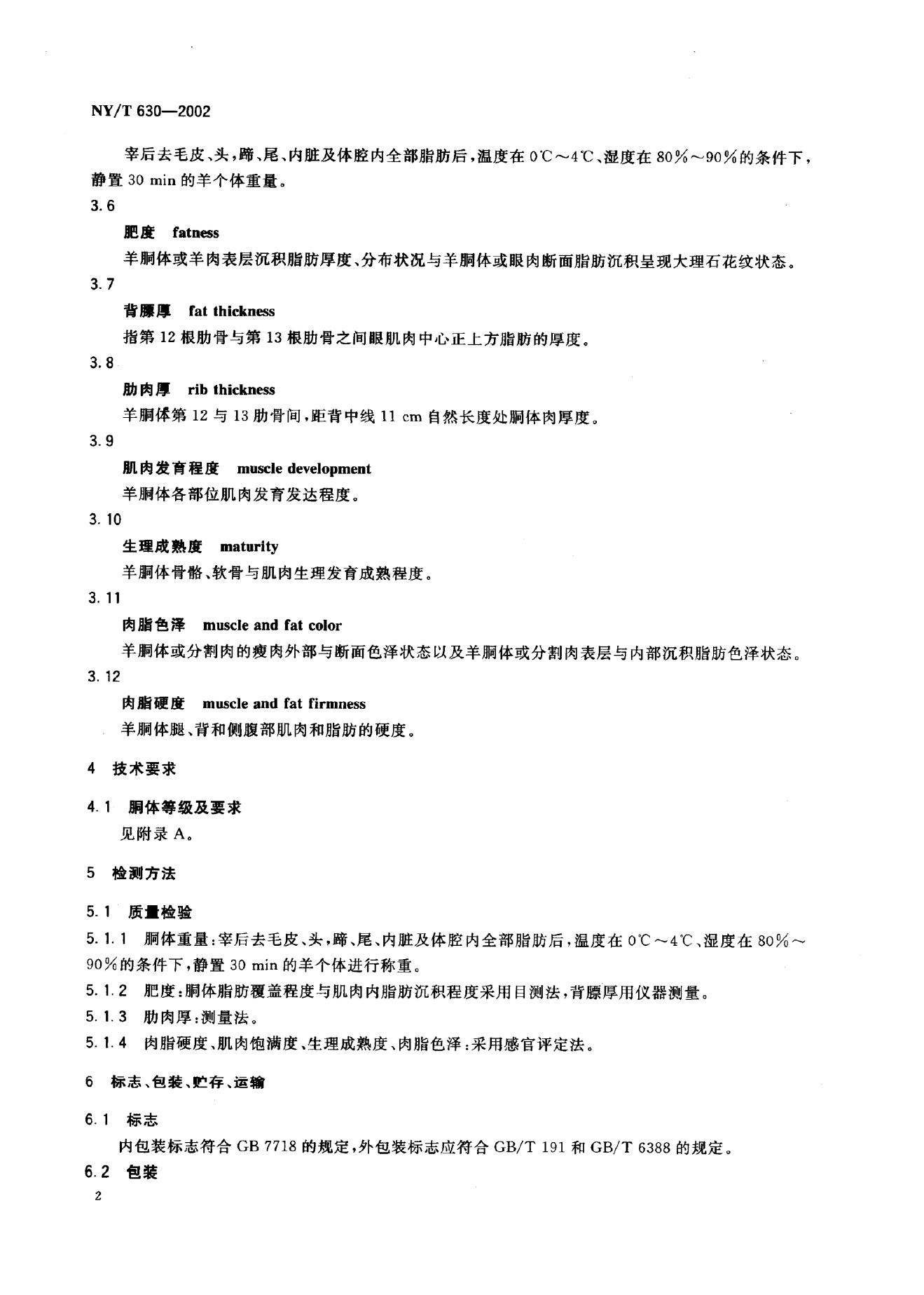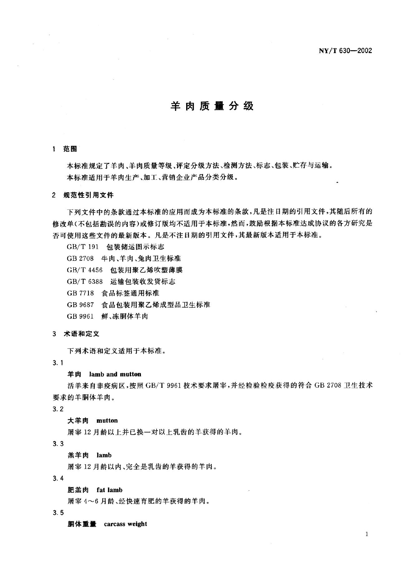 NY/T 630-2002 羊肉质量分级