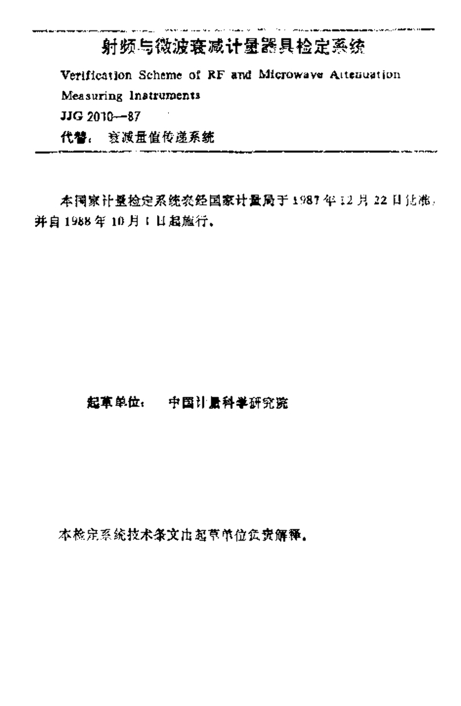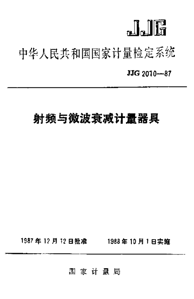 JJG 2010-1987 射频与微波衰减计量器具检定系统