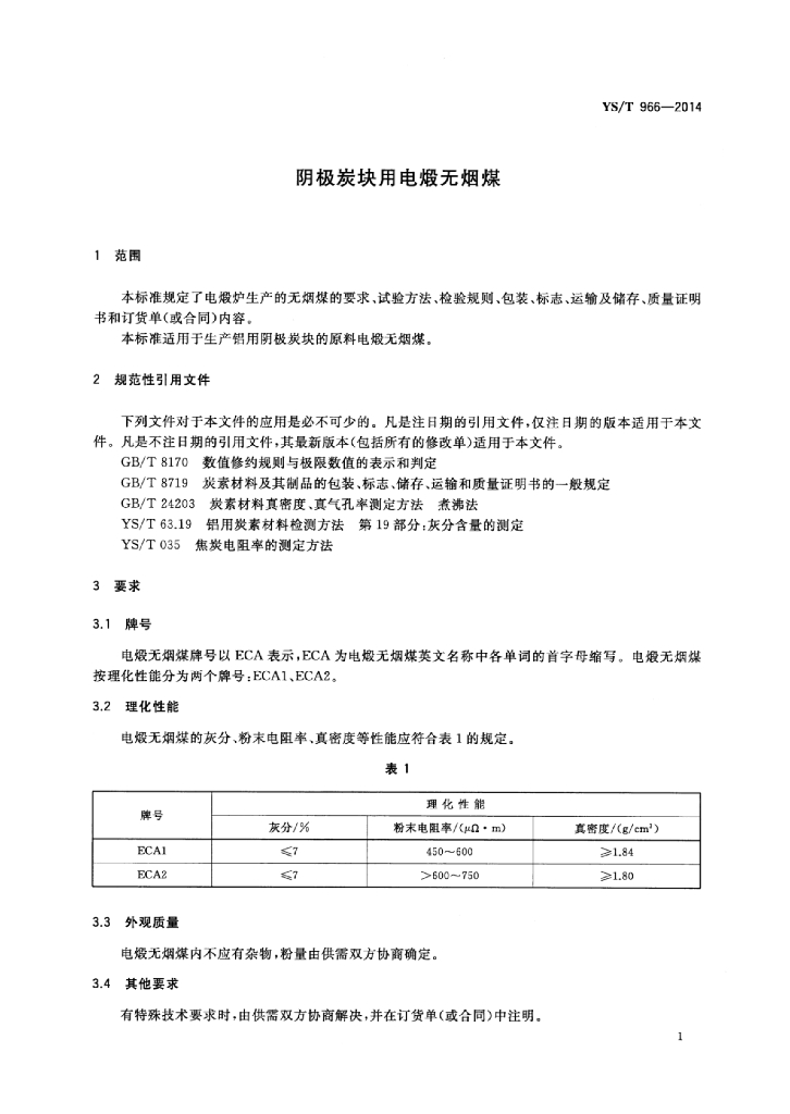 YS/T 966-2014 阴极炭块用电煅无烟煤
