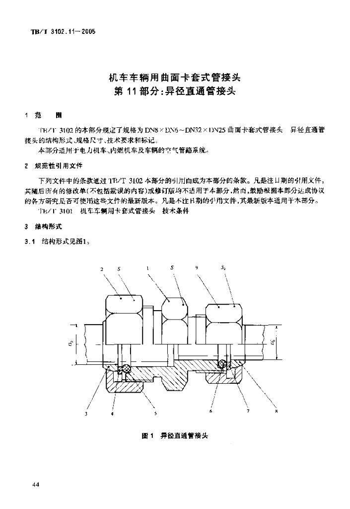 TB/T 3102.11-2005 机车车辆用曲面卡套式管接头 第11部分:异径直通管接头