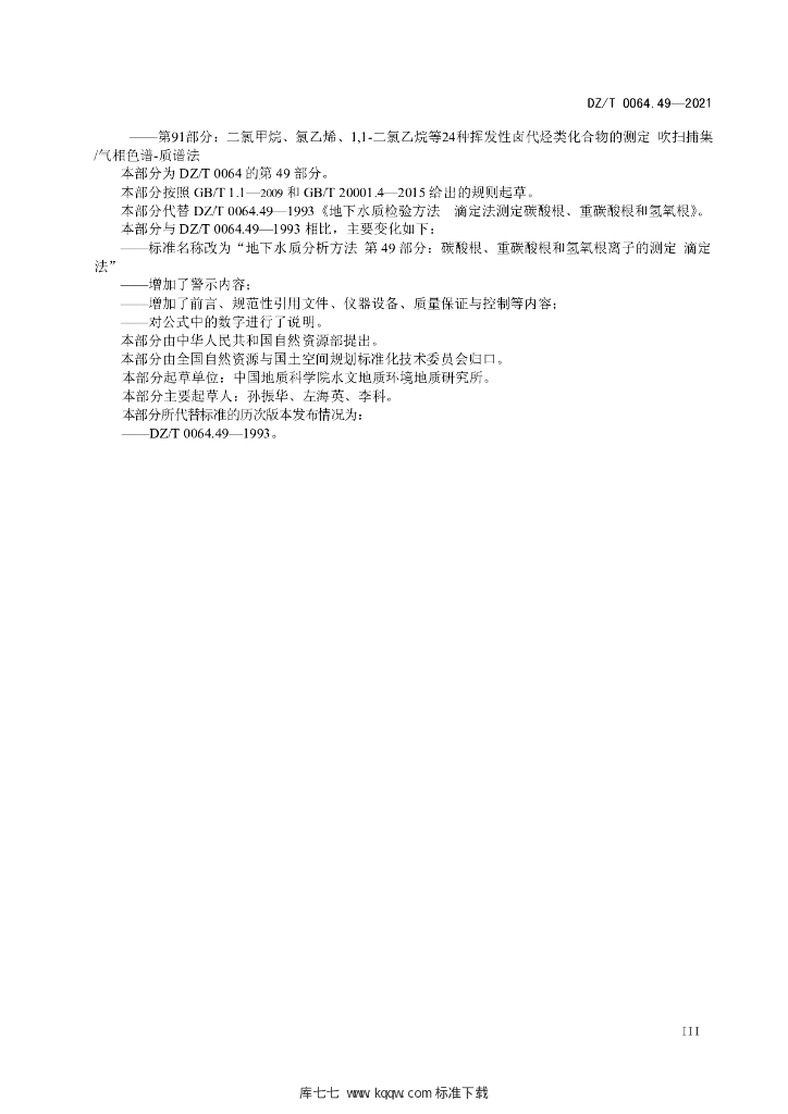 DZ/T 0064.49-2021 地下水质分析方法 第49部分:碳酸根、重碳酸根和氢氧根离子的测定 滴定法