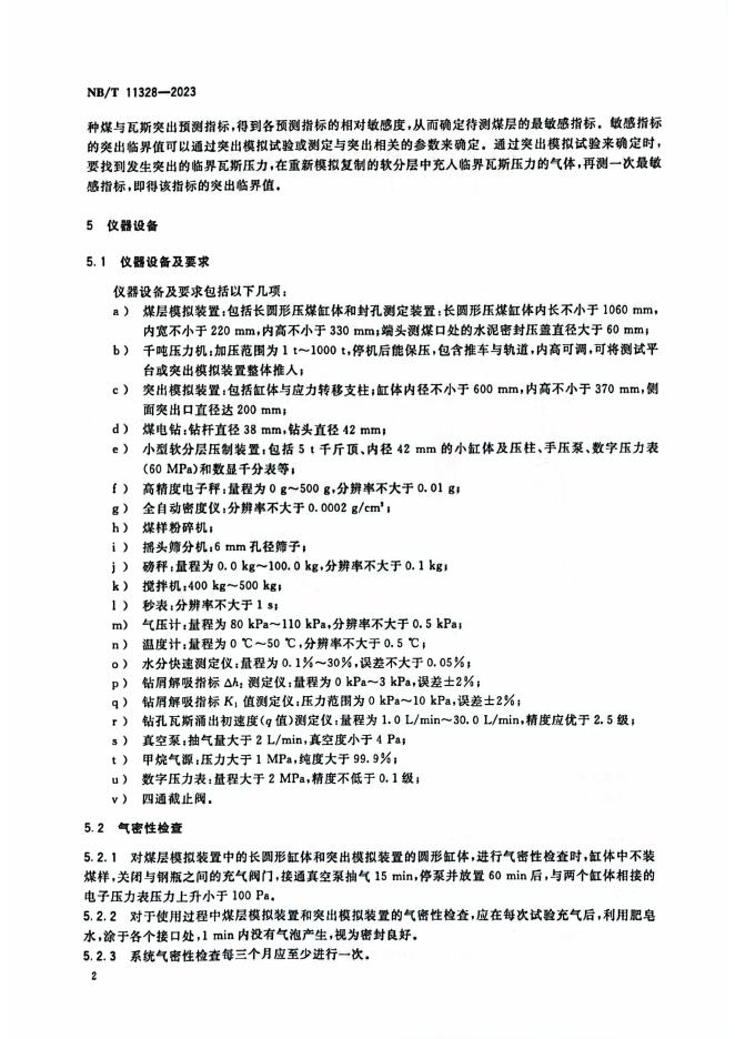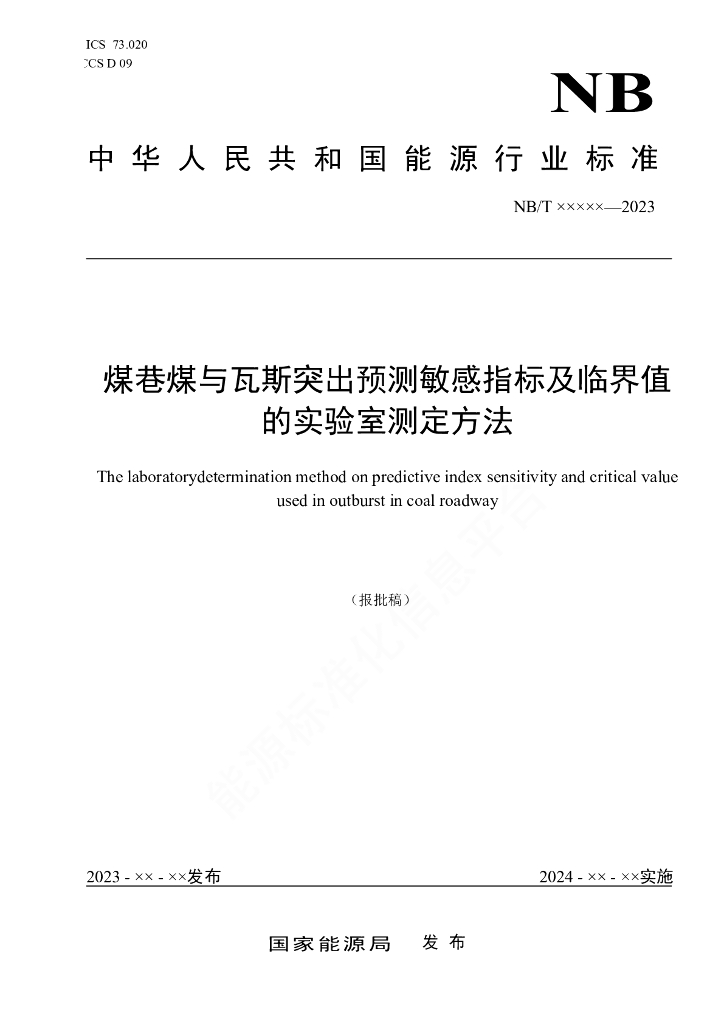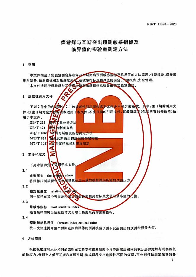 NB/T 11328-2023 煤巷煤与瓦斯突出预测敏感指标及临界值的实验室测定方法