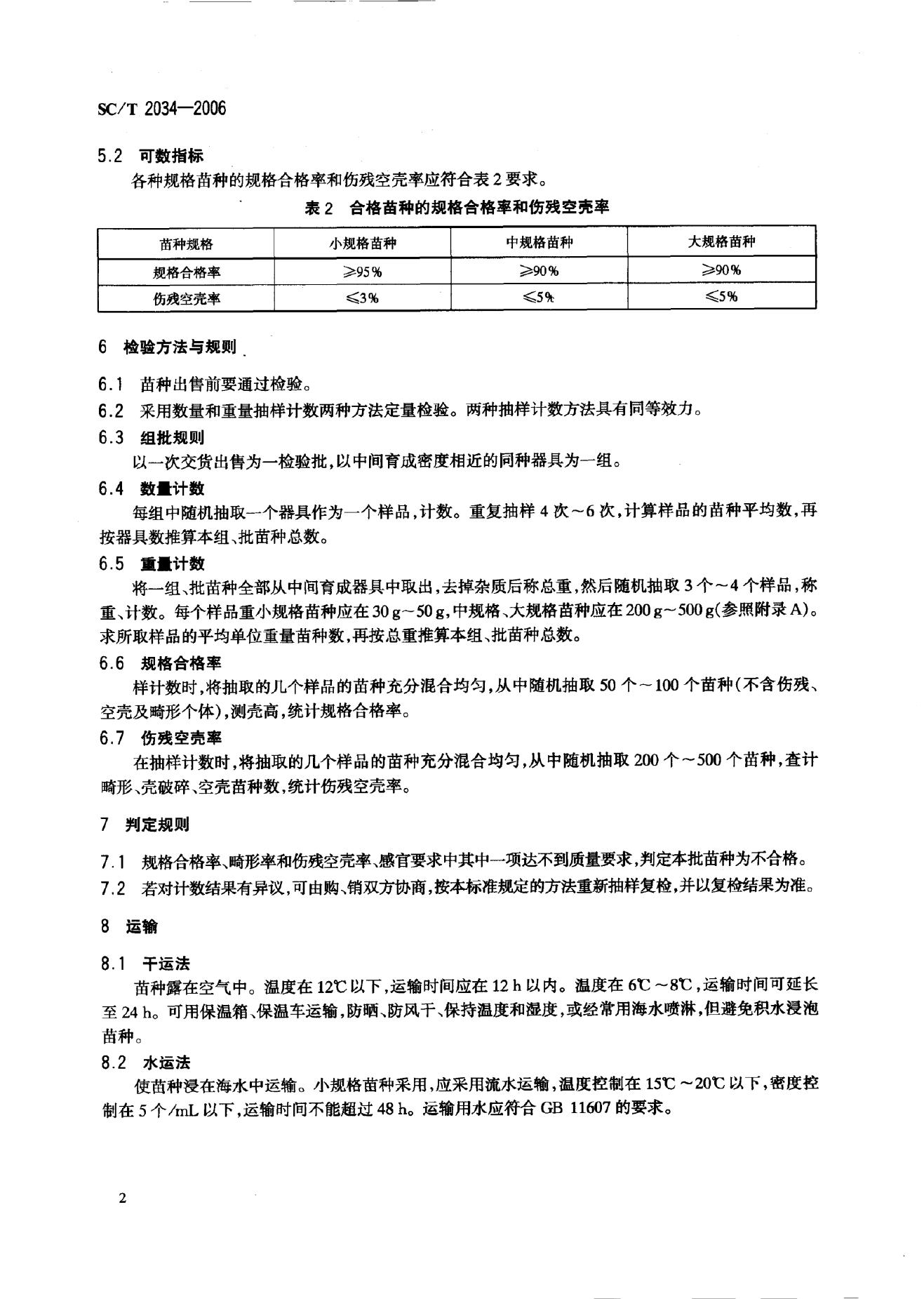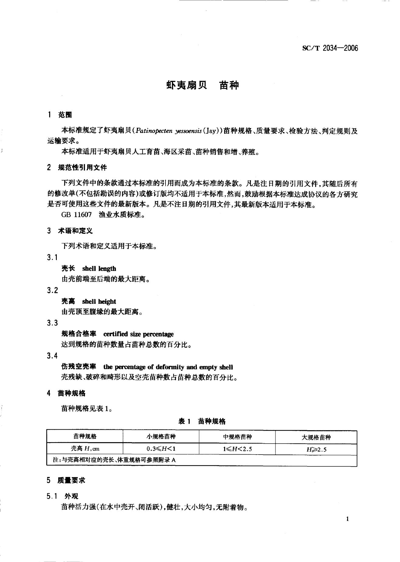 SC/T 2034-2006 虾夷扇贝 苗种