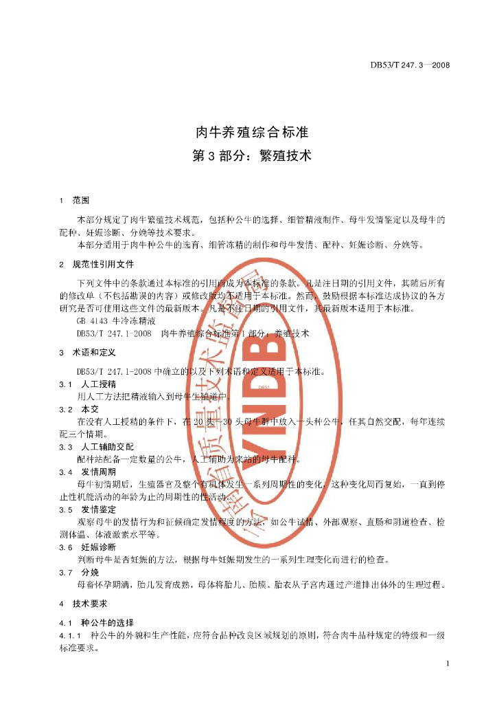 DB53/T 247.3-2008 肉牛养殖综合标准 第3部分:繁殖技术