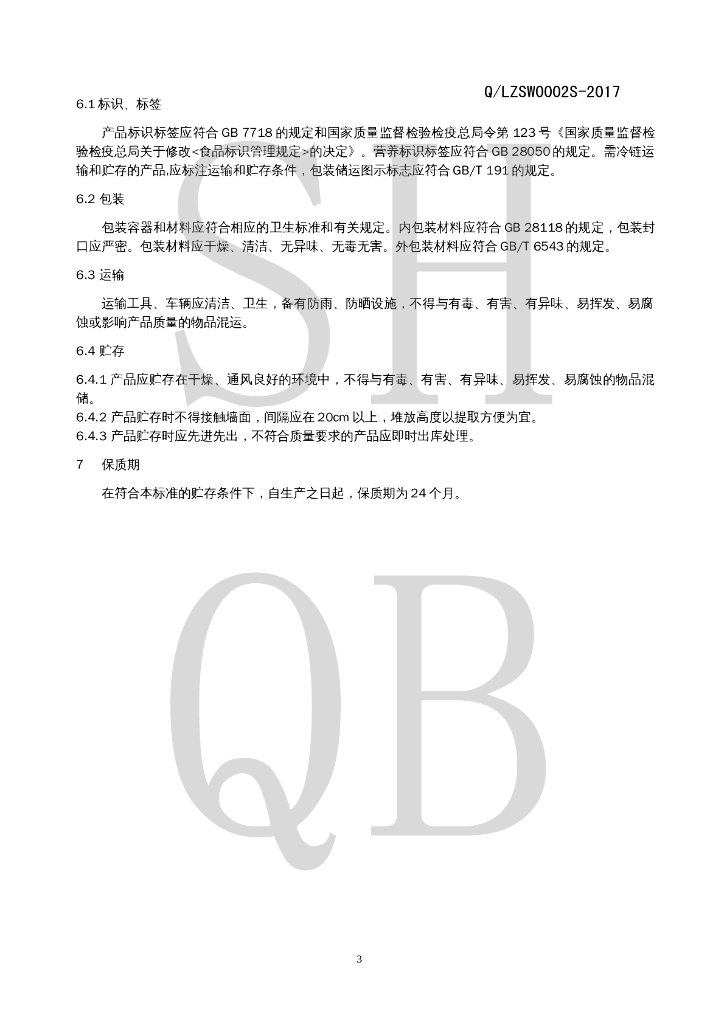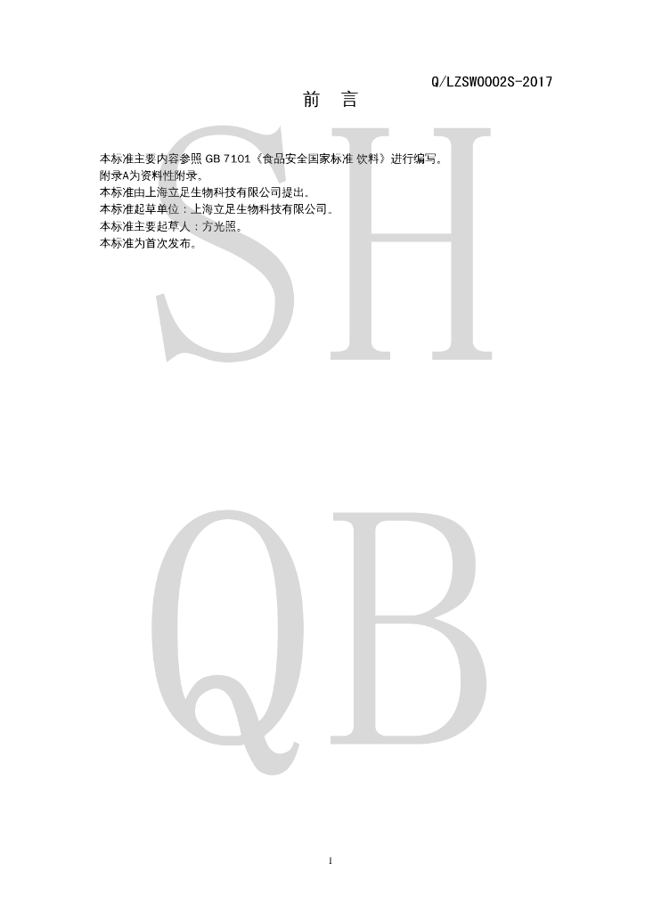Q/LZSW 0002S-2017 风味饮料(天酶易畅)