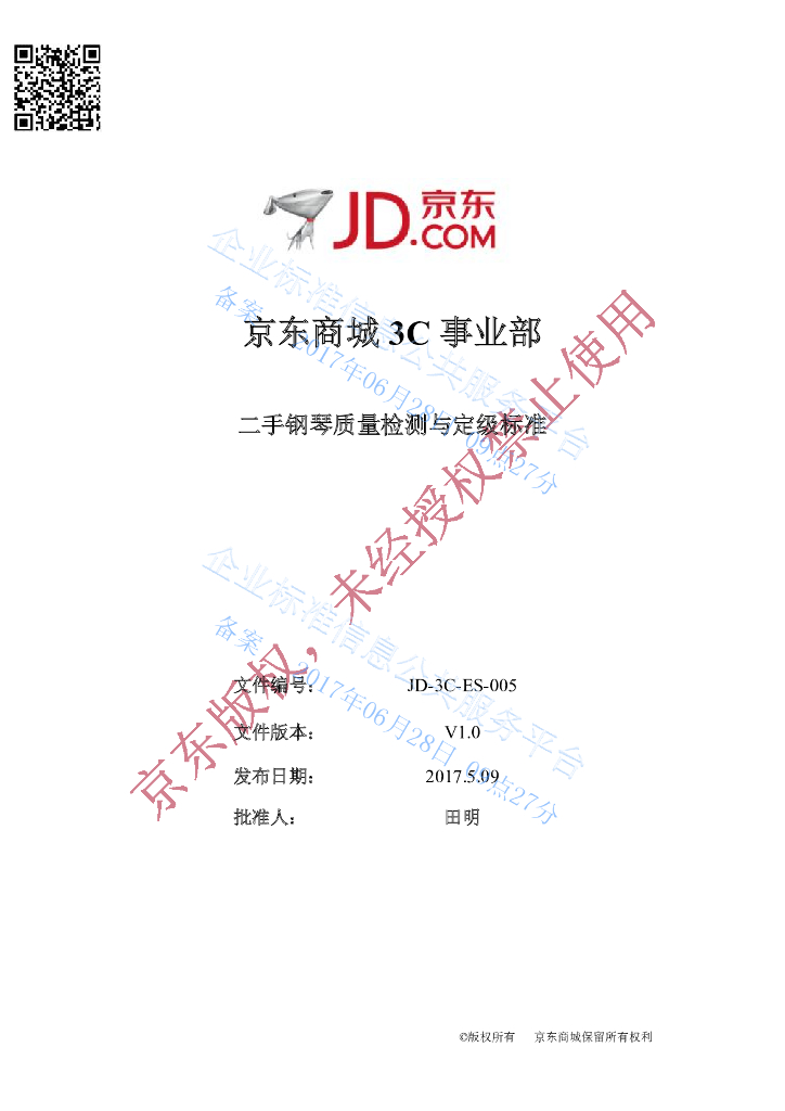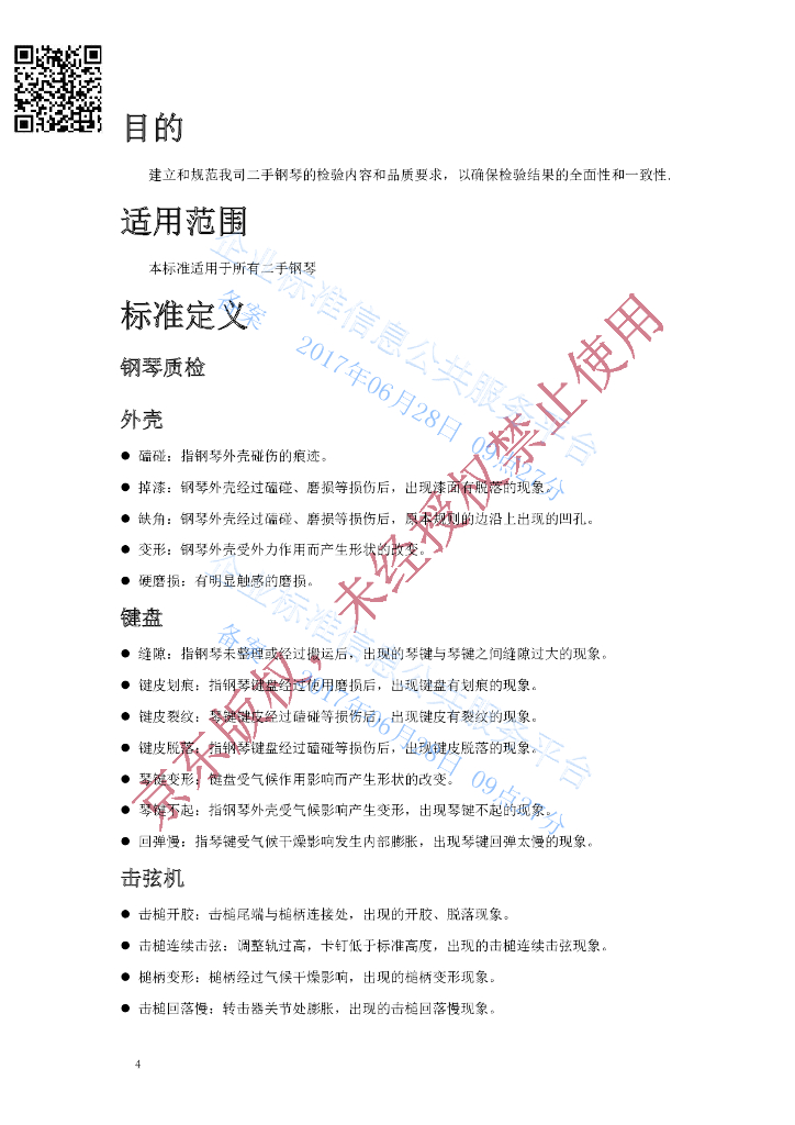 Q/DXJD3CES 005-2017 二手钢琴分级标准