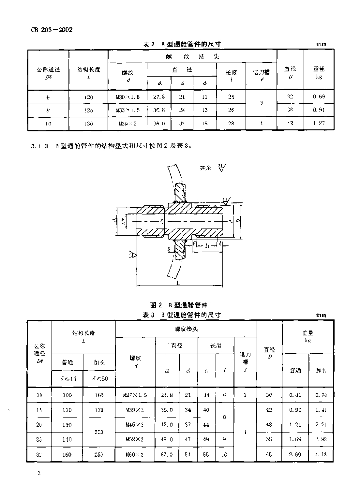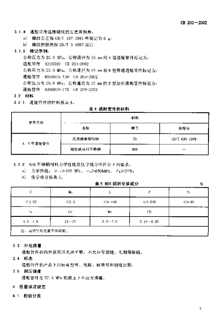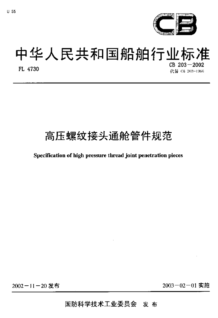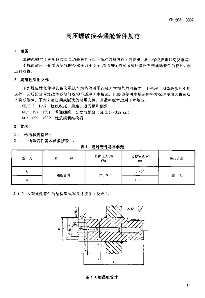 CB 203-2002 高压螺纹接头通舱管件规范