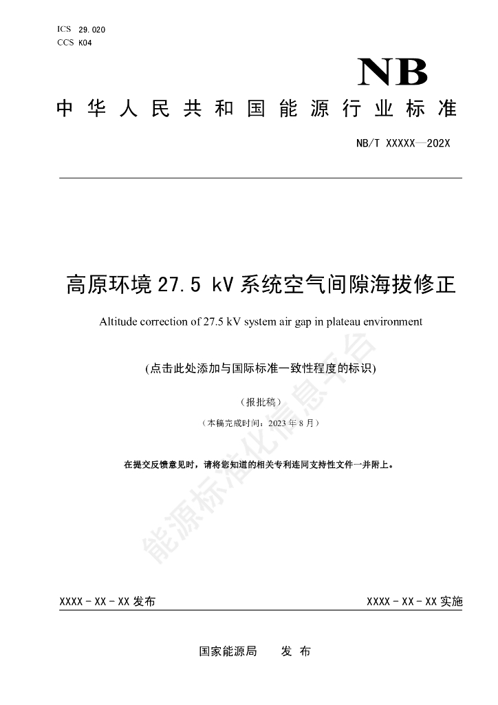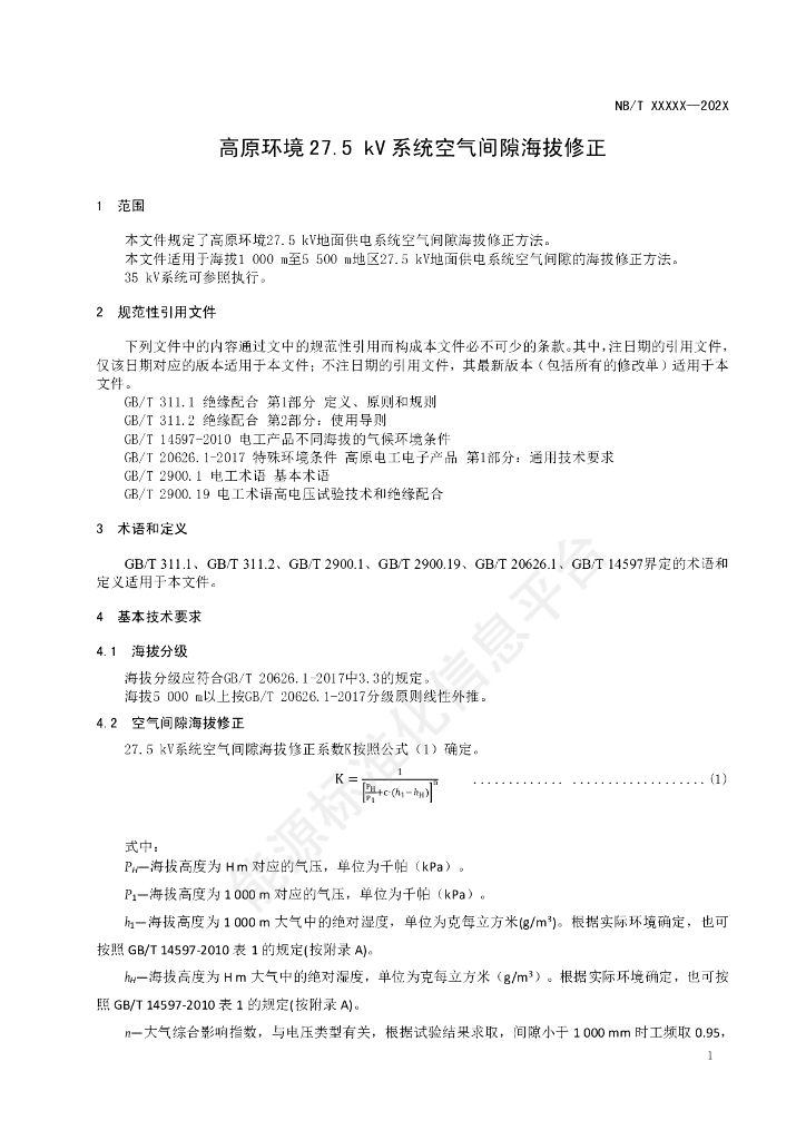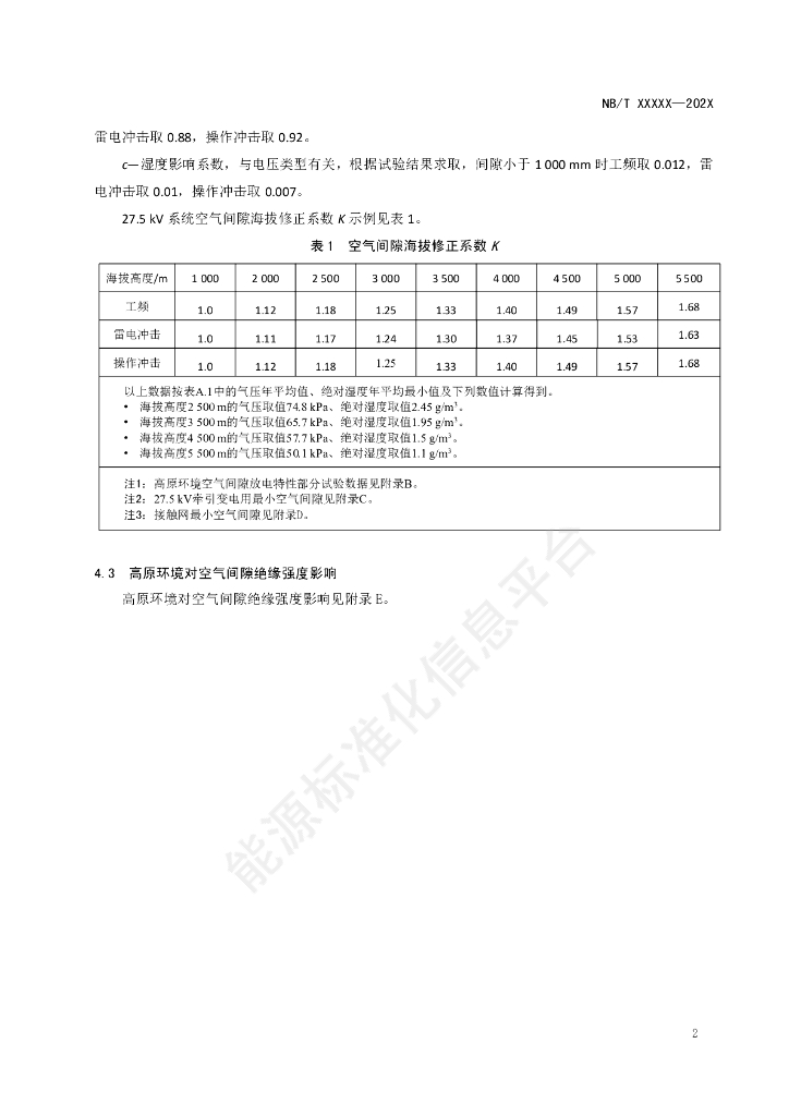 NB/T 11394-2023 高原环境27.5kV系统空气间隙海拔修正