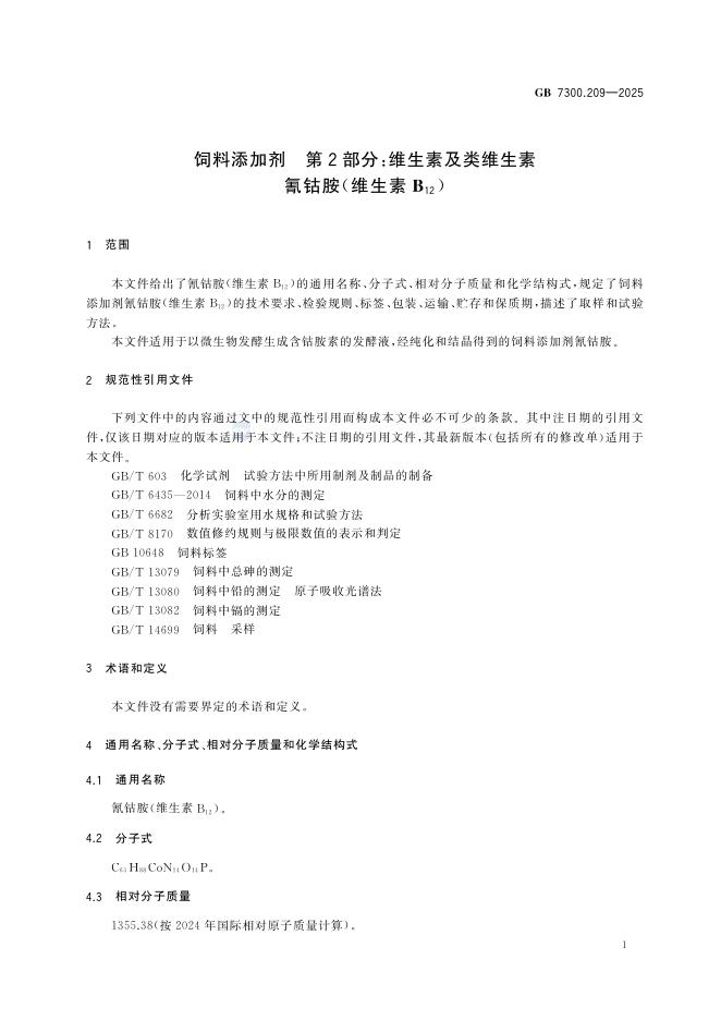 GB 7300.209-2025 饲料添加剂 第2部分: 维生素及类维生素 氰钴胺(维生素B12)