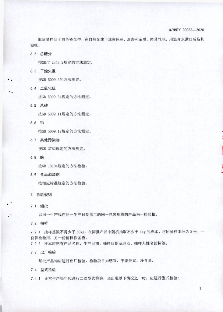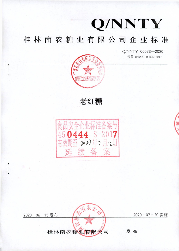Q/NNTY 0003S-2020 老红糖