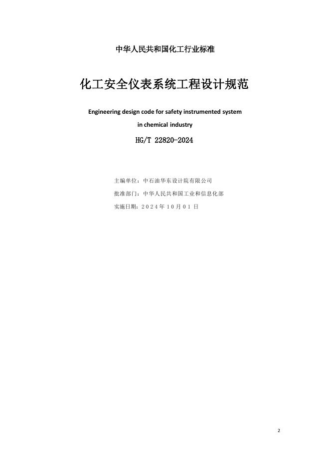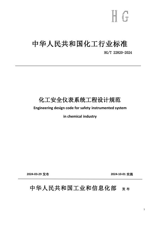 HG/T 22820-2024 化工安全仪表系统工程设计规范