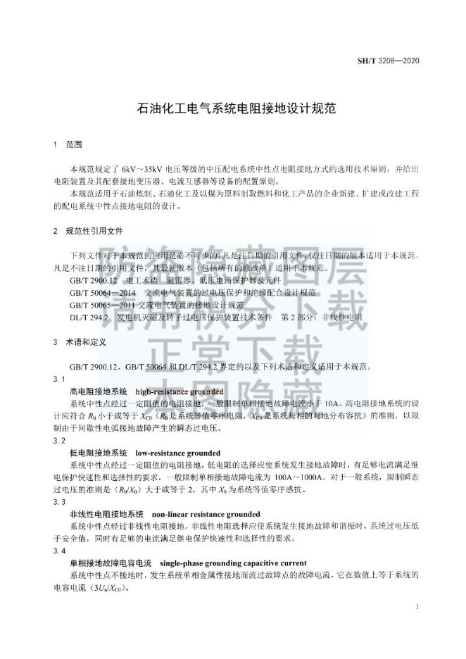 SH/T 3208-2020 石油化工电气系统电阻接地设计规范