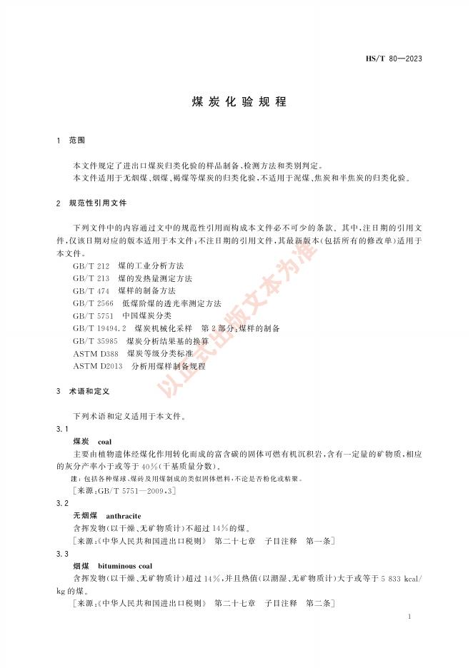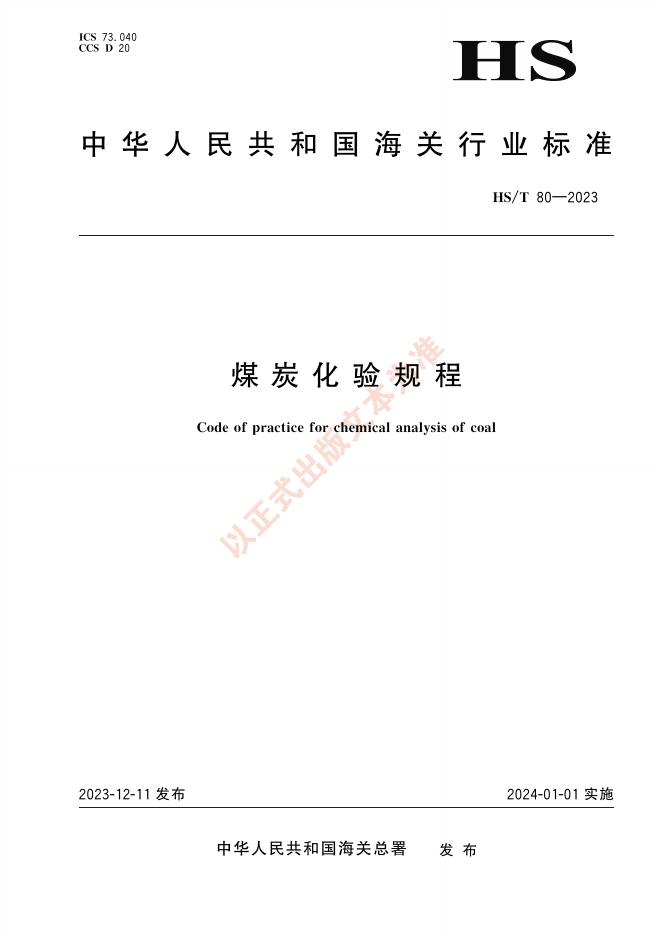 HS/T 80-2023 煤炭化验规程