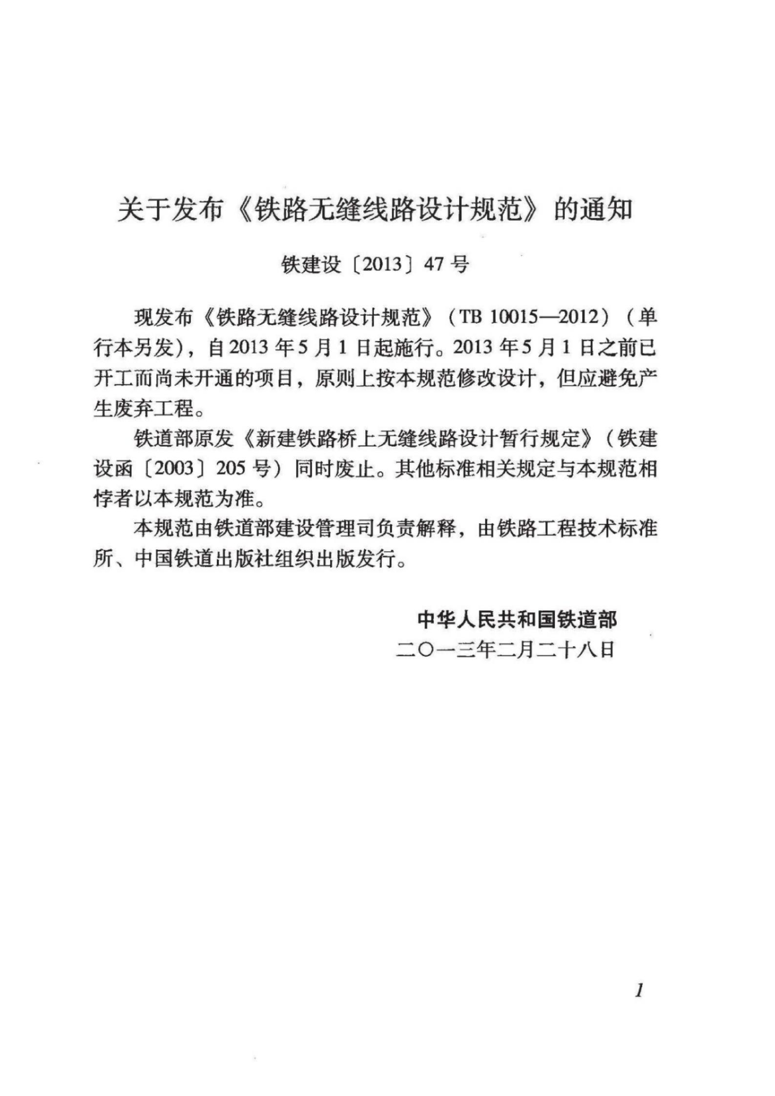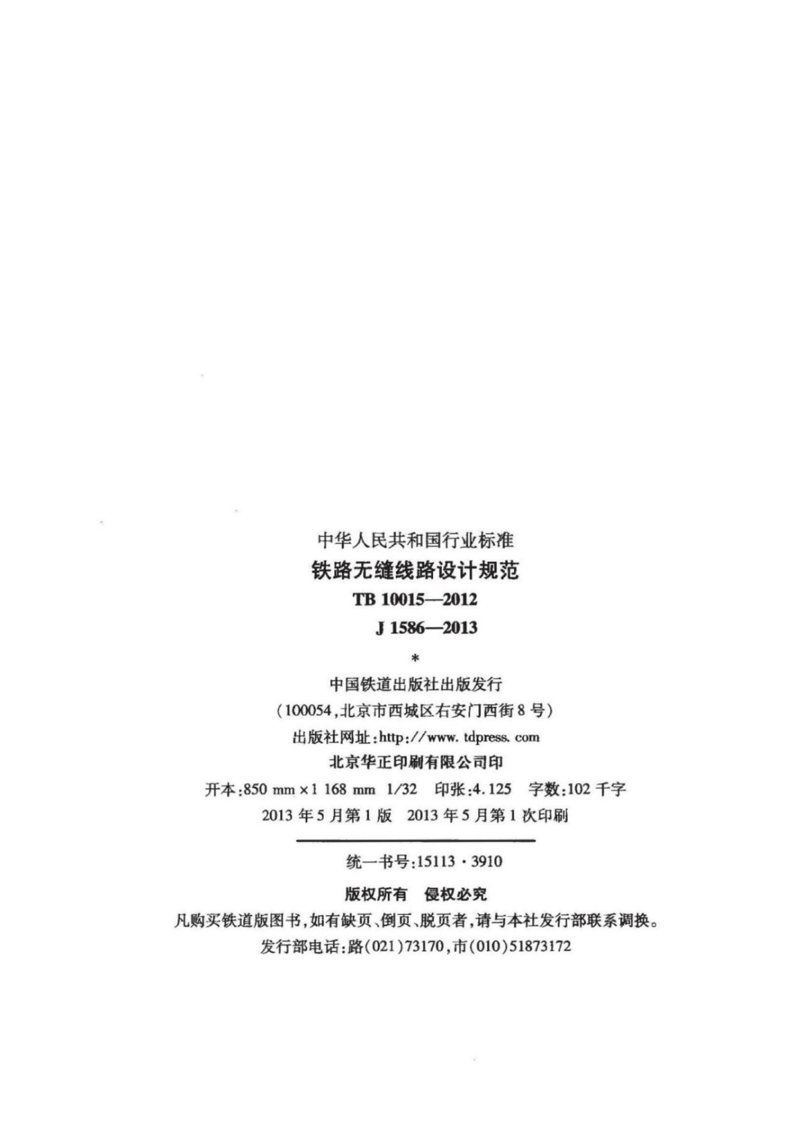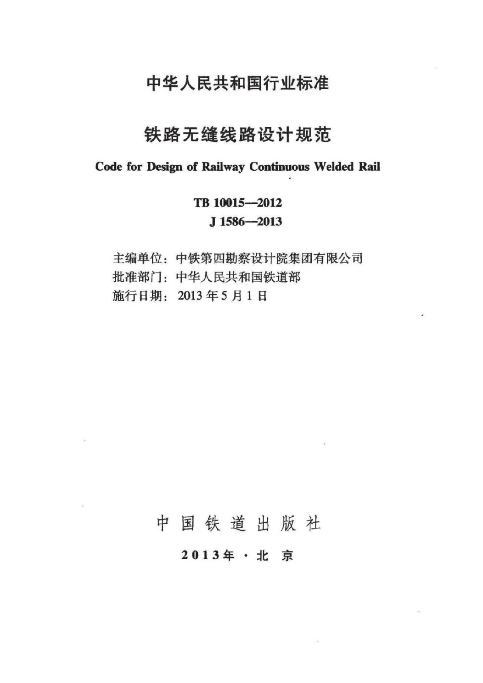 TB 10015-2012 铁路无缝线路设计规范