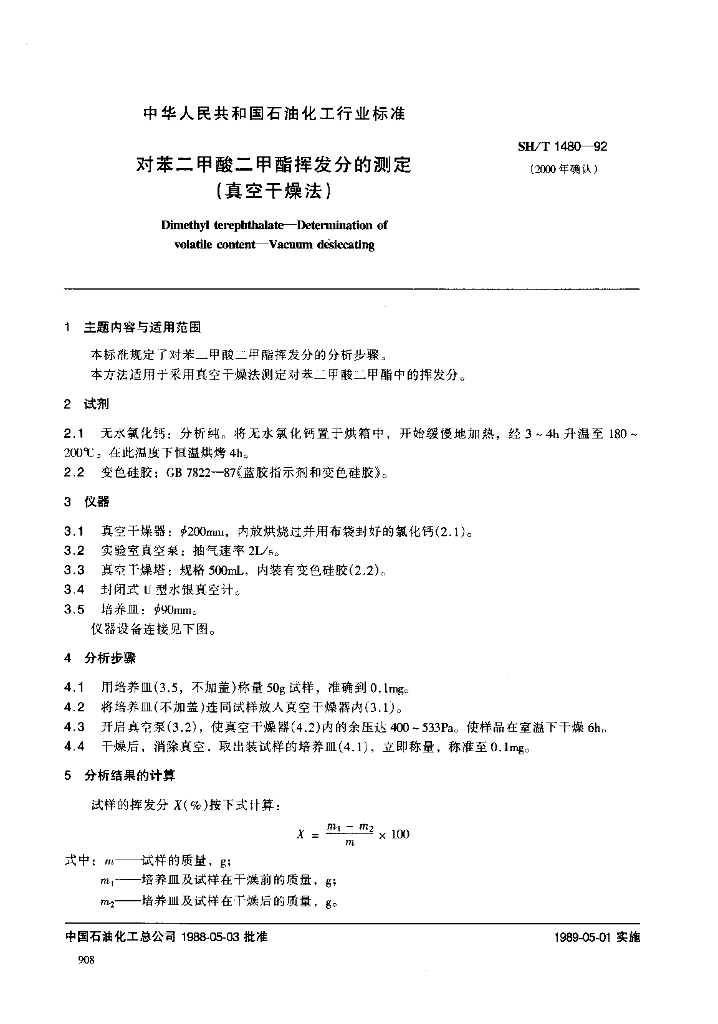 SH/T 1480-1992 对苯二甲酸二甲酯挥发分的测定(真空干燥法)