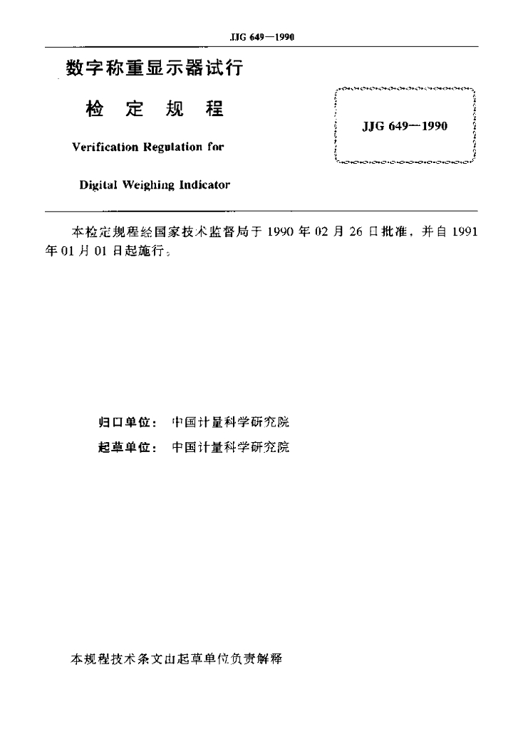 JJG 649-1990 数字称重显示器(试行)检定规程
