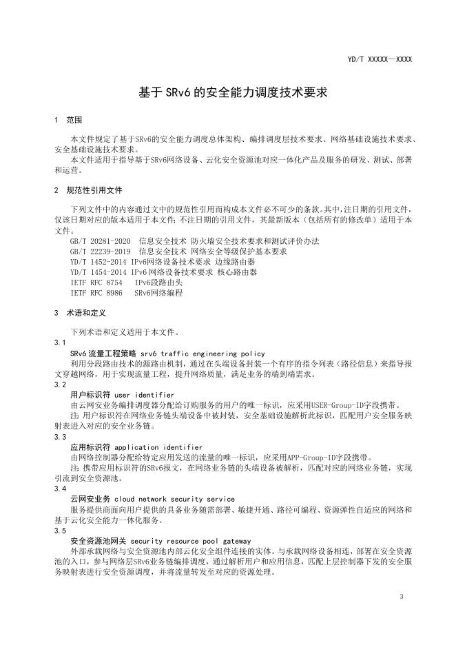 YD/T 6023-2024 基于SRv6的安全能力调度技术要求