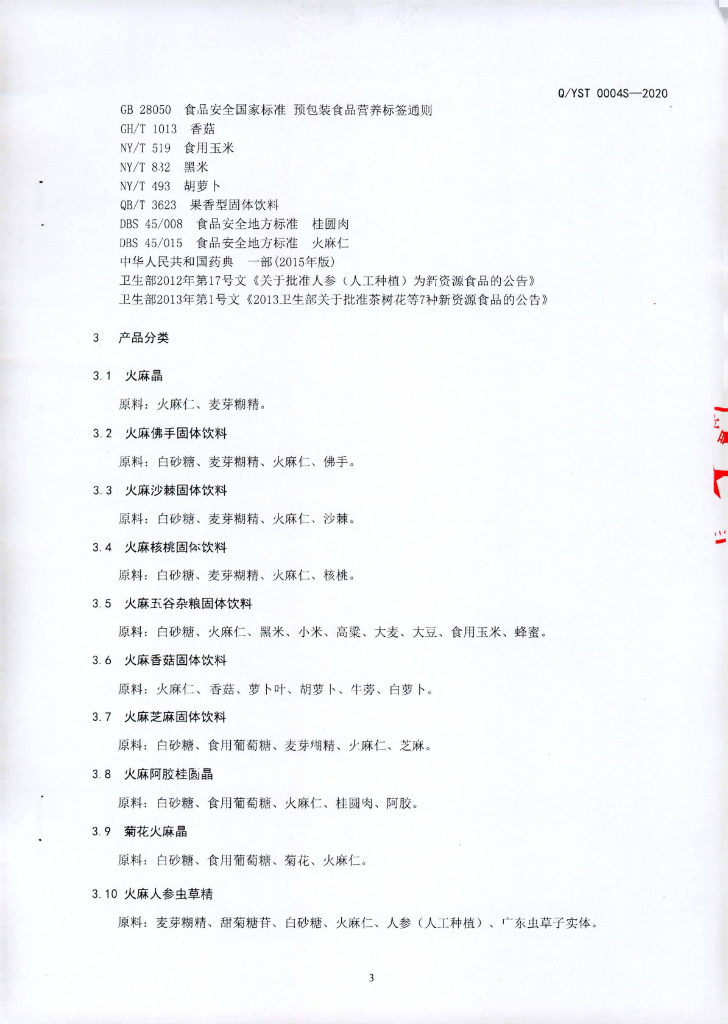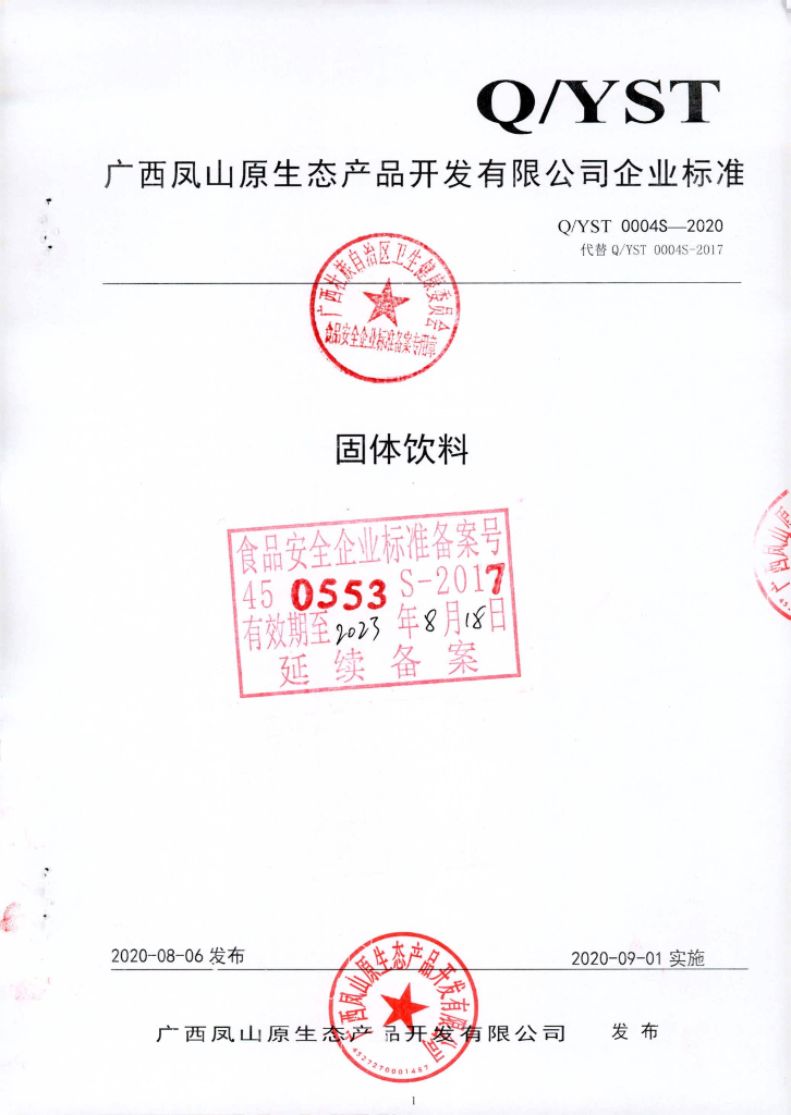 Q/YST 0004S-2020 固体饮料