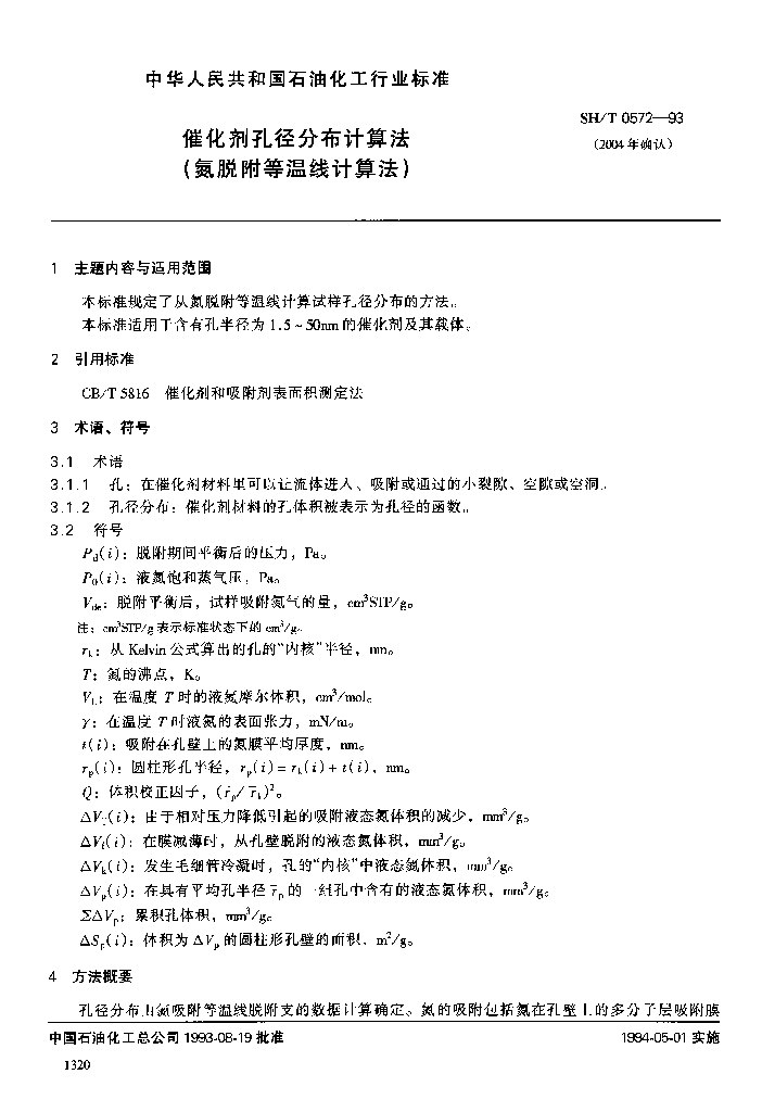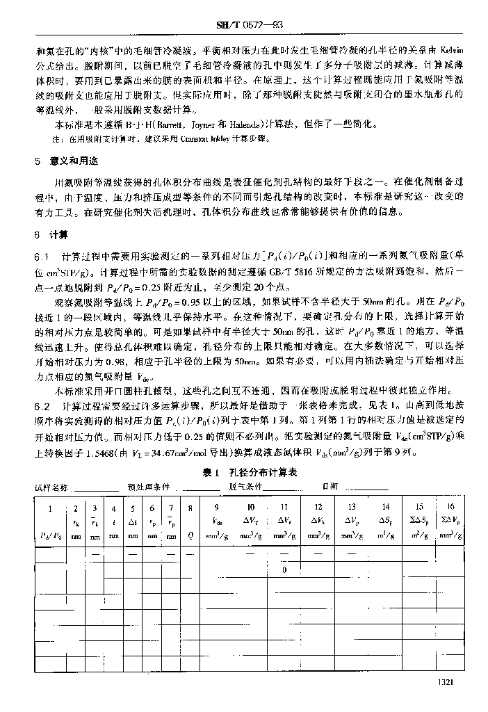 SH/T 0572-1993 催化剂孔径分布计算法(氮脱附等温线计算法)
