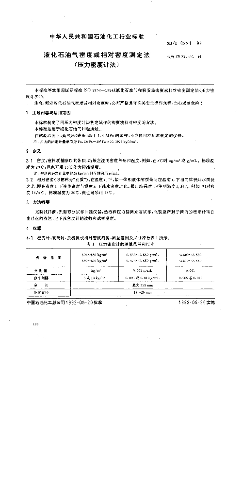 SH/T 0221-1992 液化石油气密度或相对密度测定法(压力密度计法)