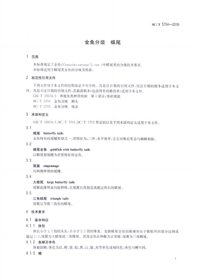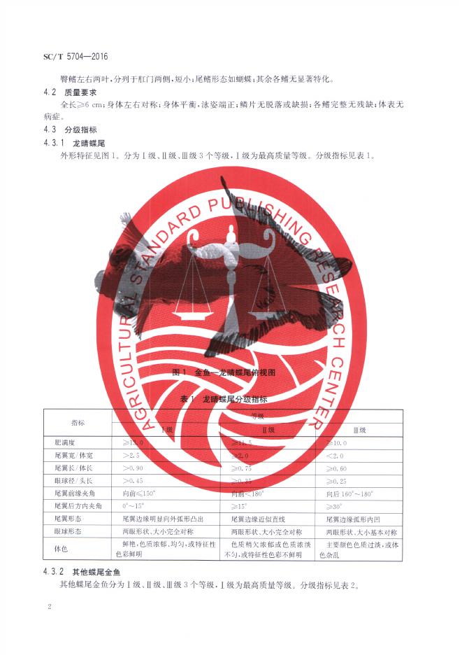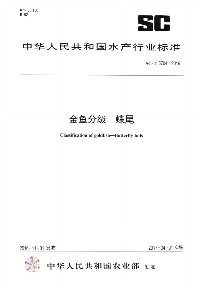 SC/T 5704-2016 金鱼分级 蝶尾
