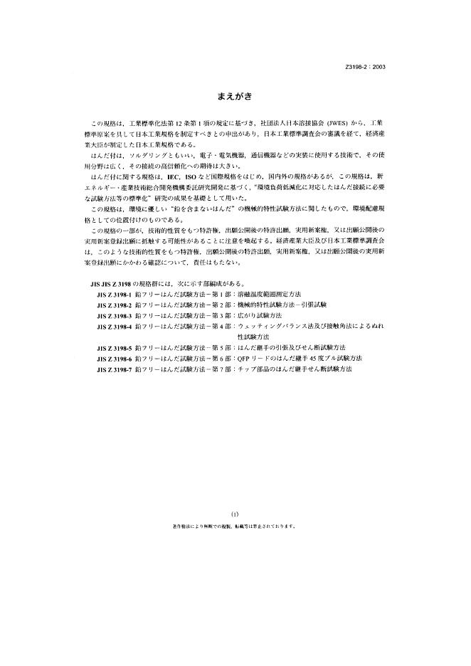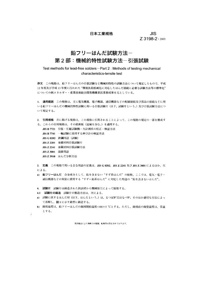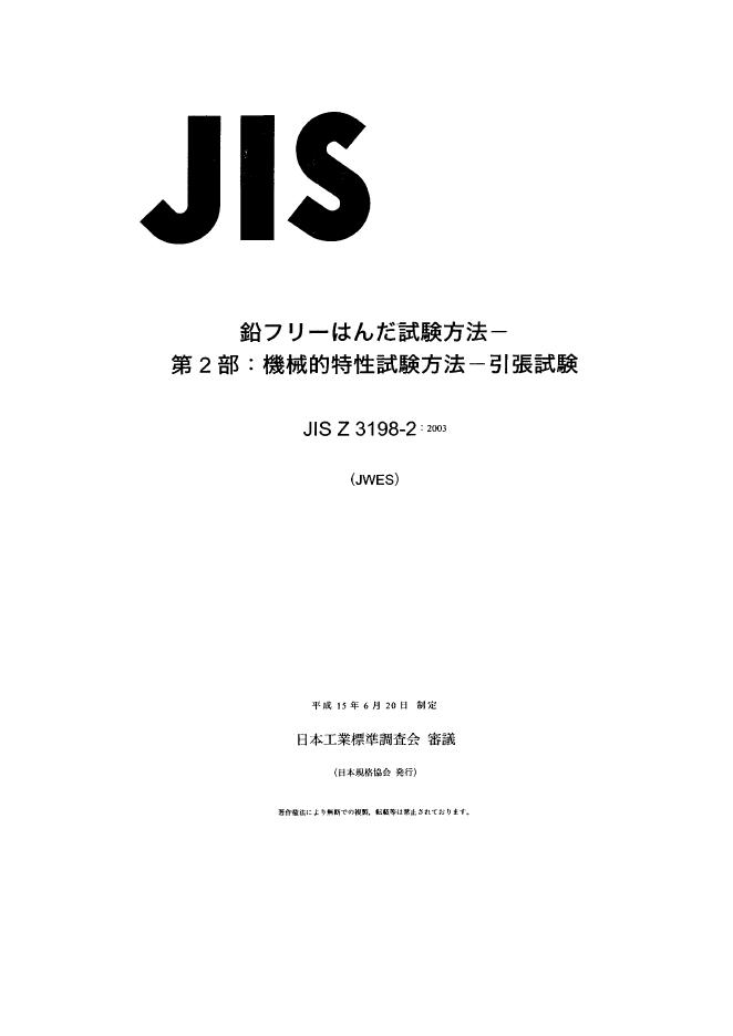 JIS Z3198-2-2003 无铅焊剂的试验方法 第2部分:机械拉伸特性试