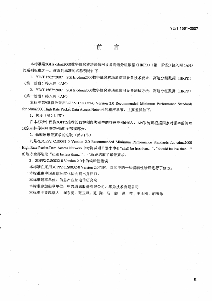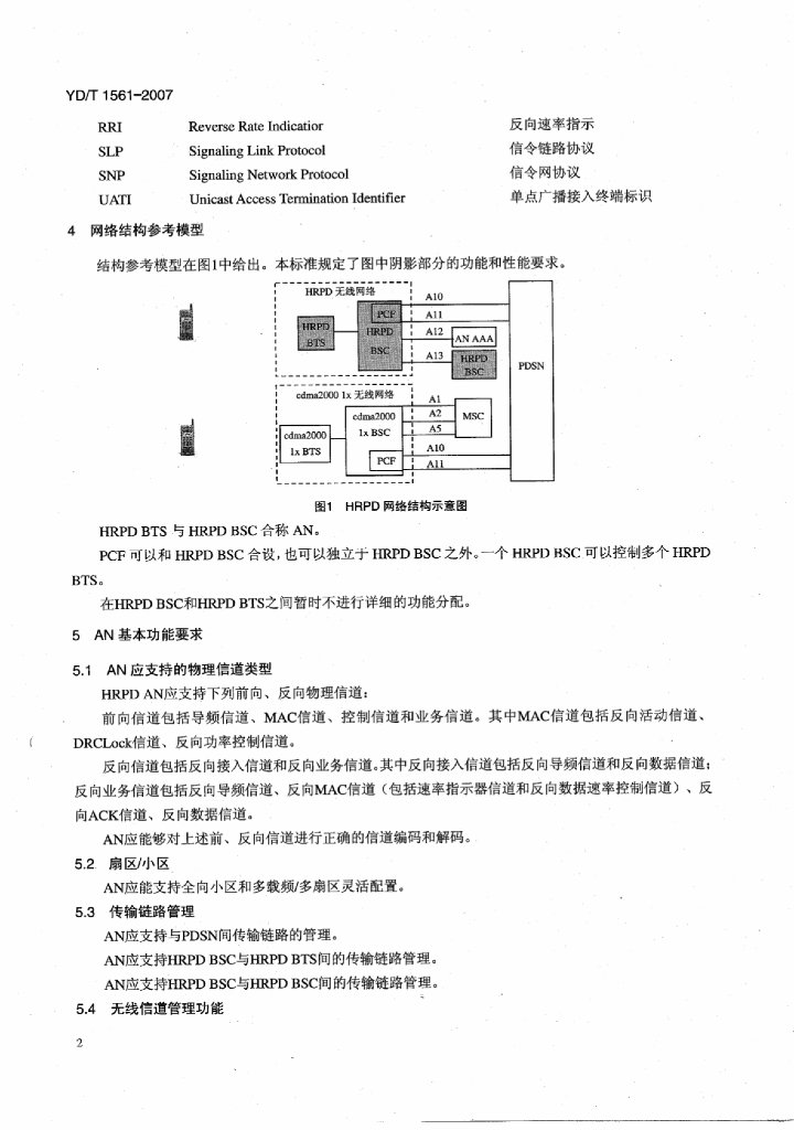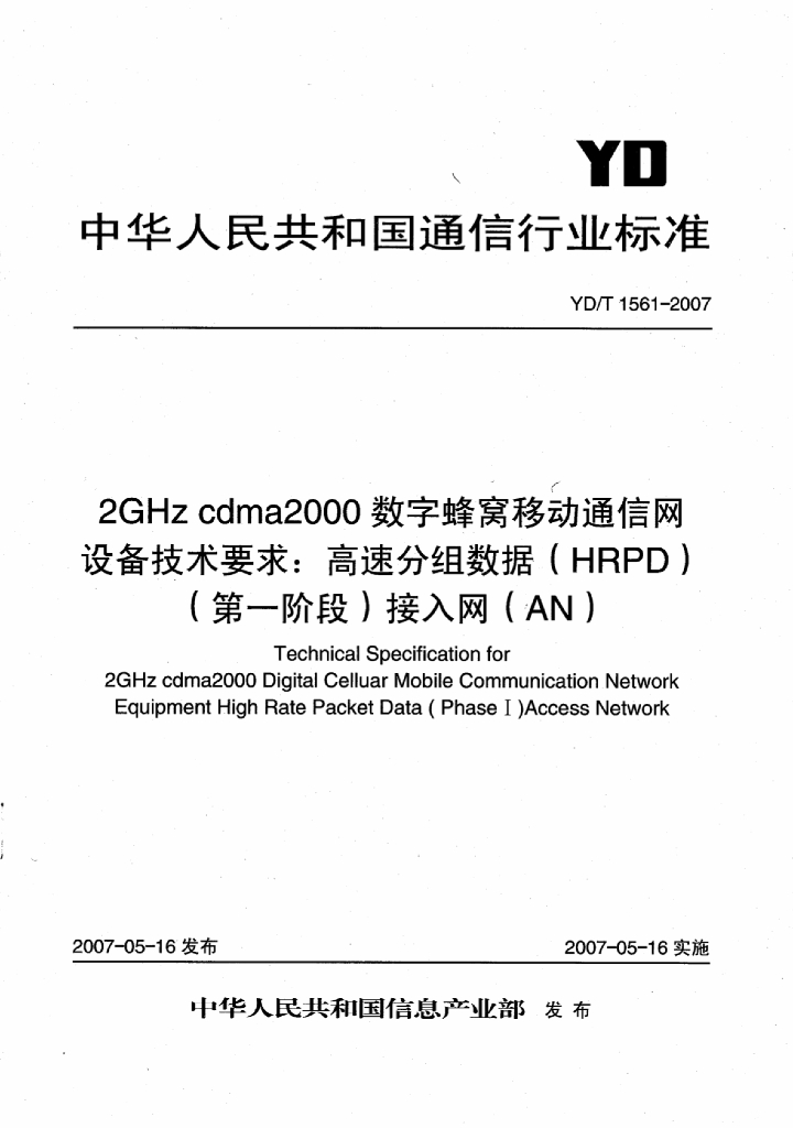 YD/T 1561-2007 2GHz cdma2000 数字蜂窝移动通信网设备技术要求:高速分组数据(HRPD)(第一阶段)接入网(AN)