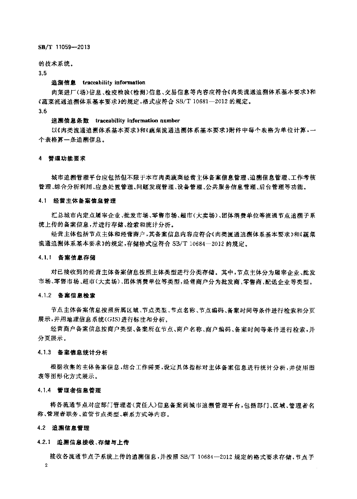 SB/T 11059-2013 肉类蔬菜流通追溯体系城市管理平台技术要求