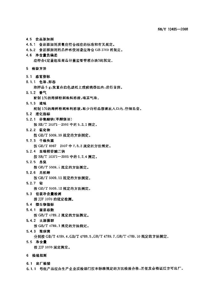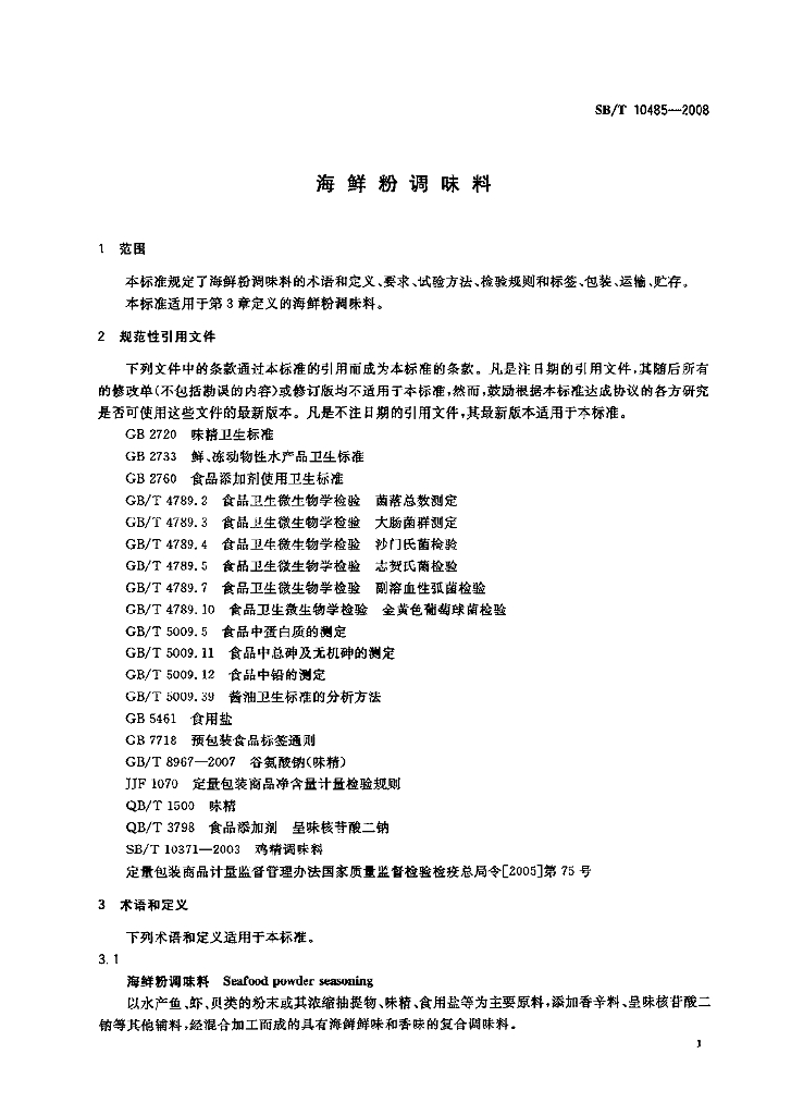 SB/T 10485-2008 海鲜粉调味料