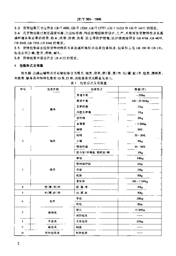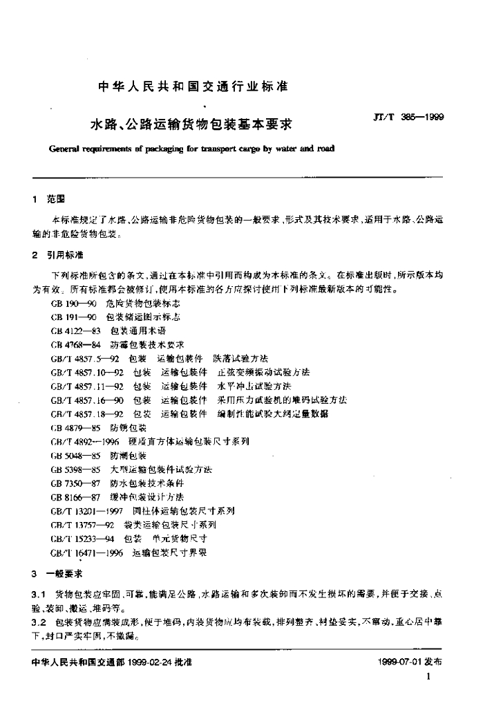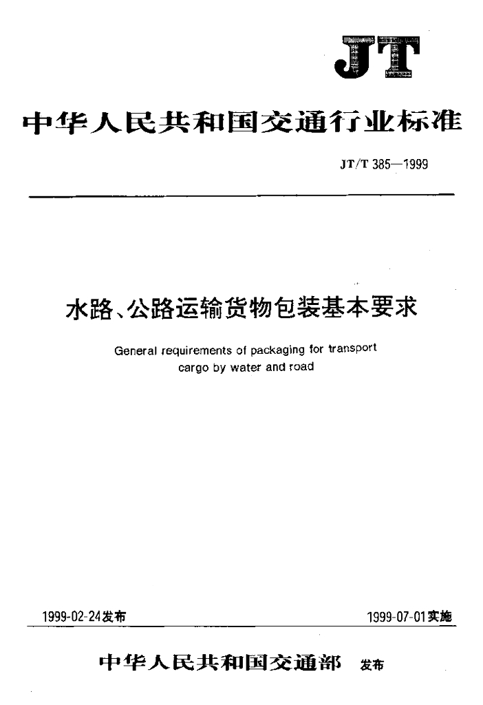 JT/T 385-1999 水路、公路运输货物包装基本要求