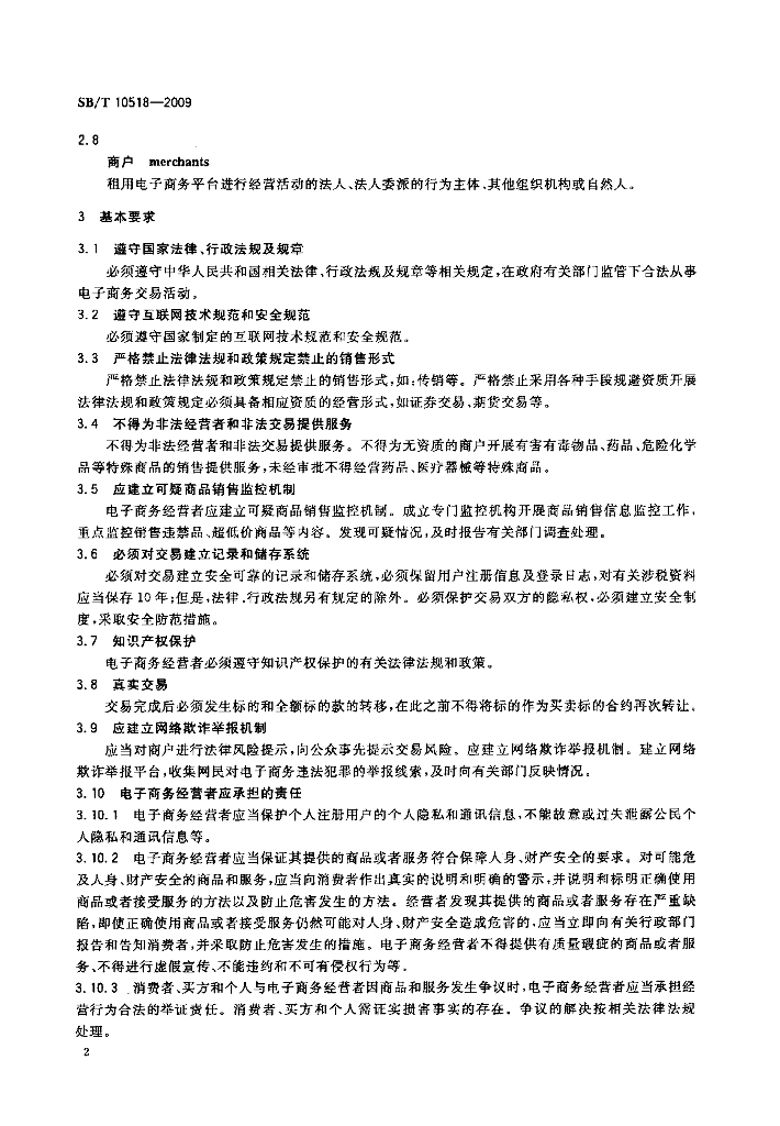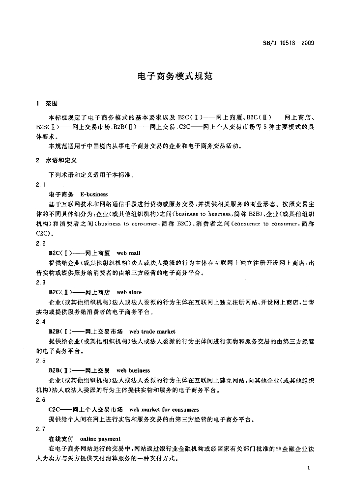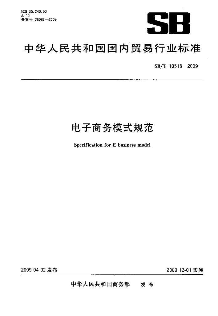 SB/T 10518-2009 电子商务模式规范
