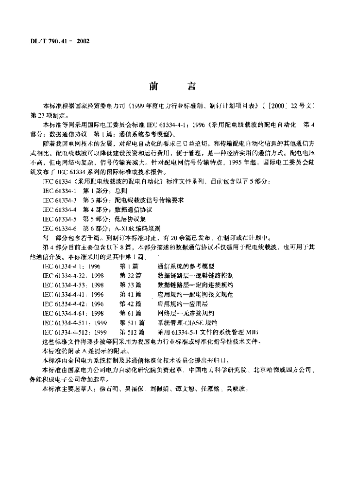 DL/T 790.41-2002 采用配电线载波的配电自动化 第4部分: 数据通信协议 第1篇 通信系统参考模型