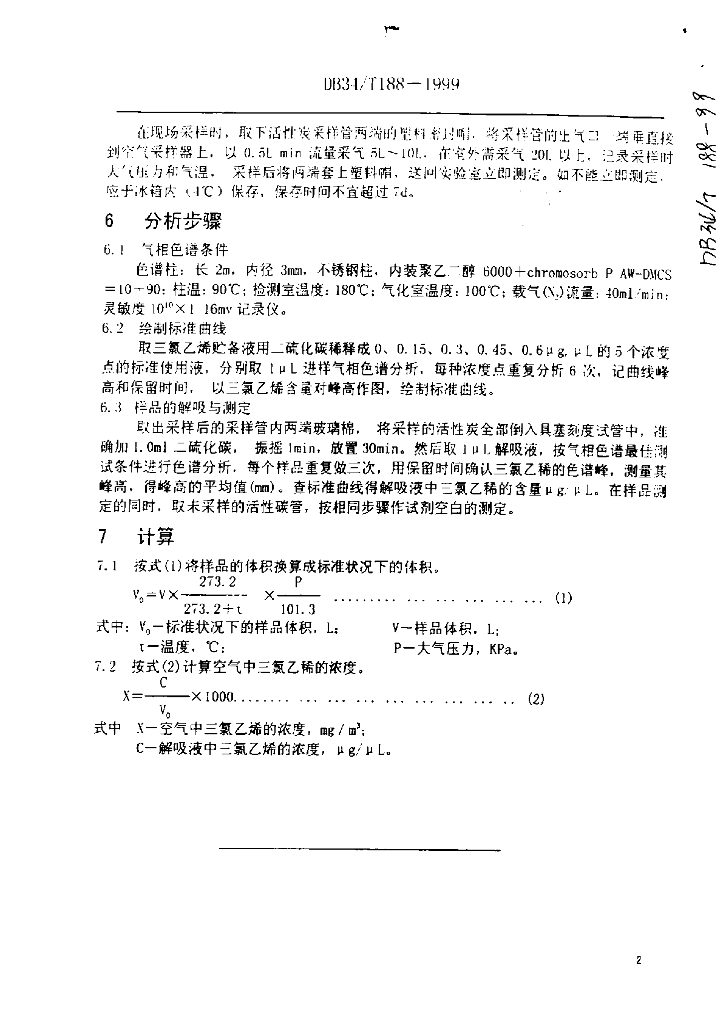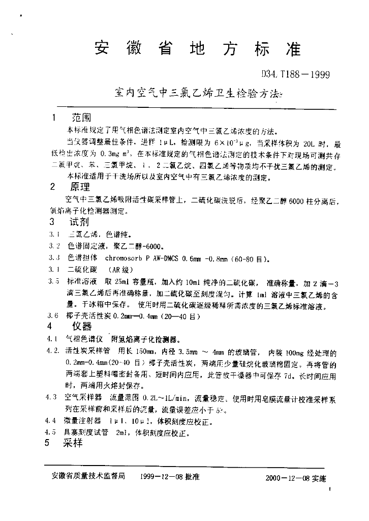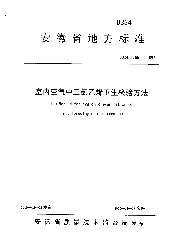 DB34/T 188-1999 室内空气中三氯乙烯卫生检验方法