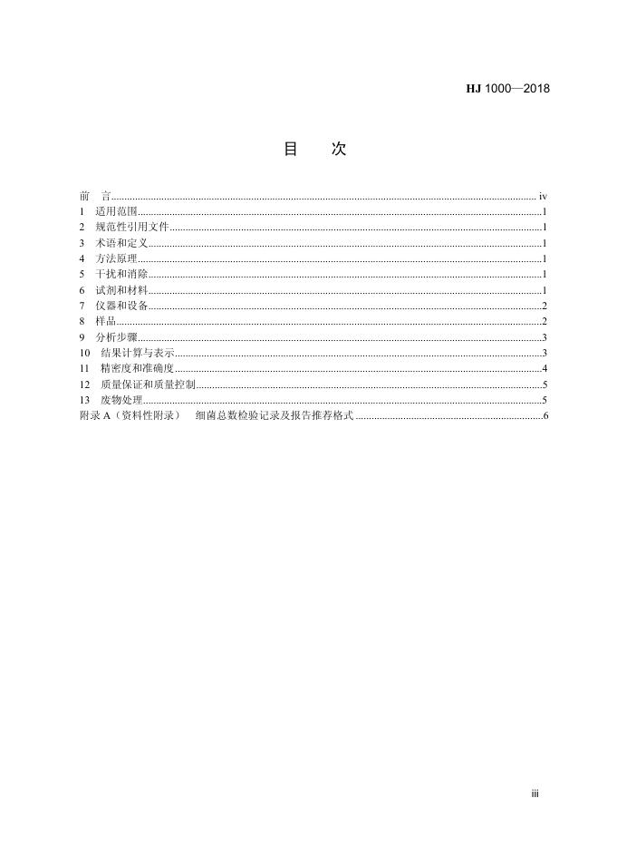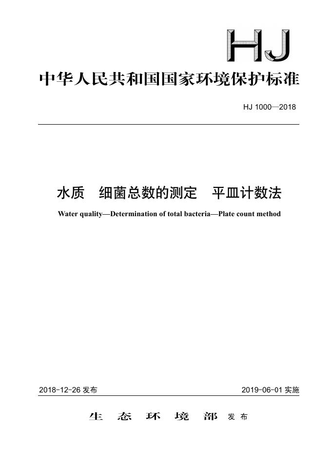 HJ 1000-2018 水质 细菌总数的测定 平皿计数法
