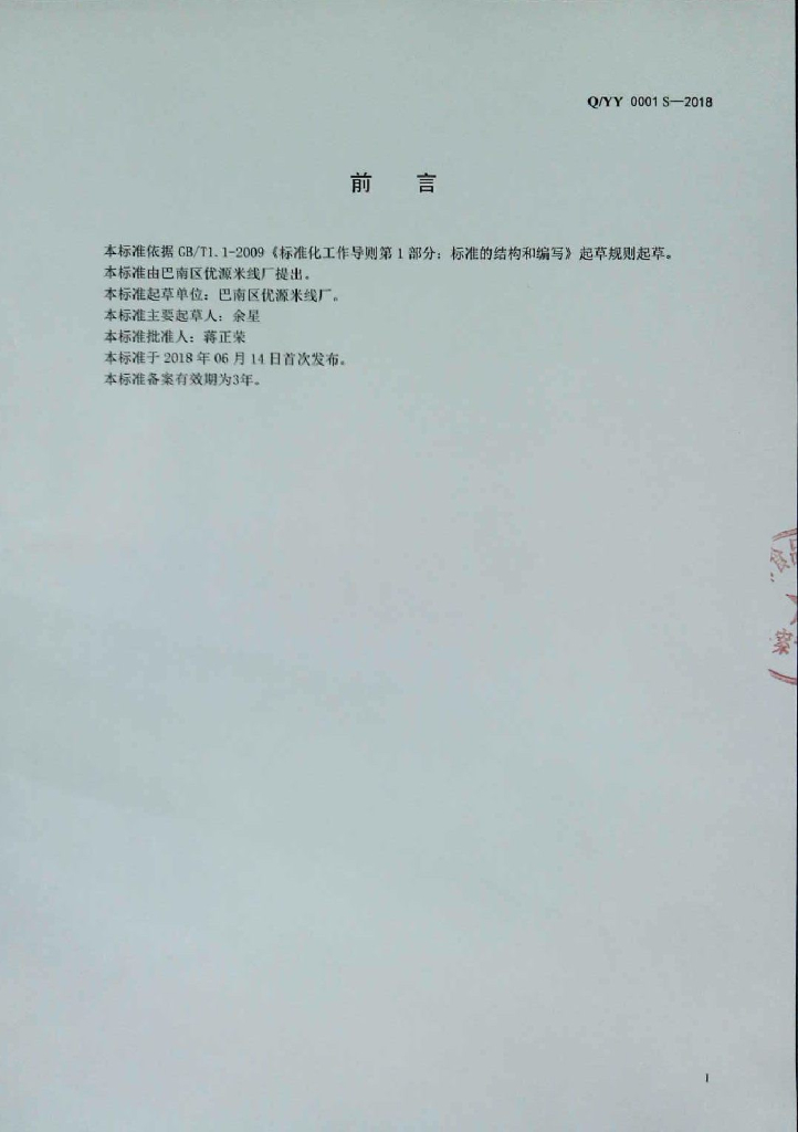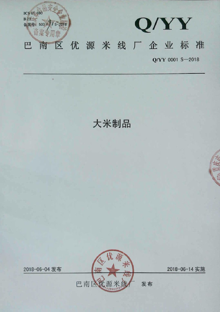 Q/YY 0001S-2018 大米制品