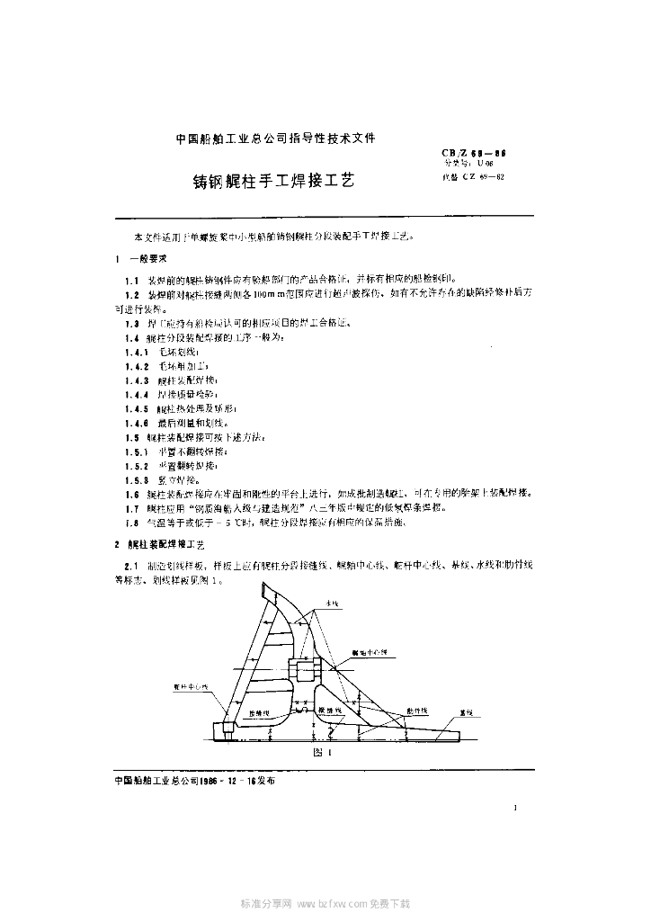 CB/Z 69-1986 铸钢艉柱手工焊接工艺
