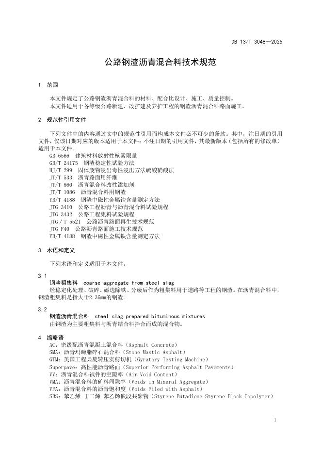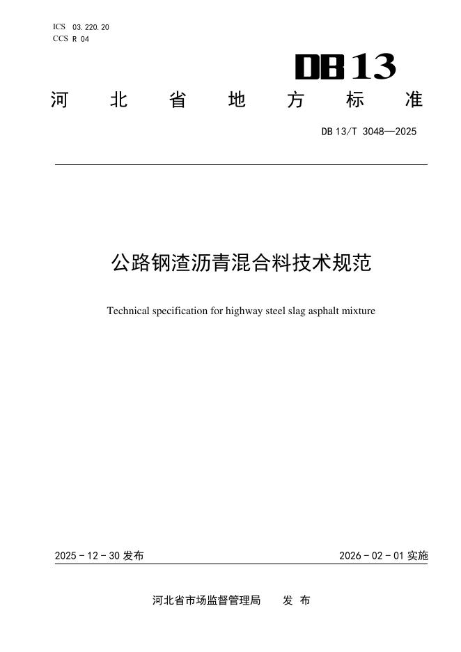DB13/T 3048-2025 公路钢渣沥青混合料技术规范
