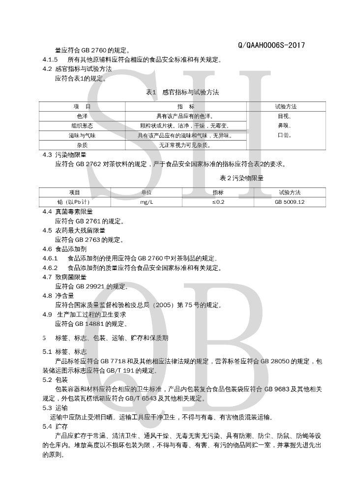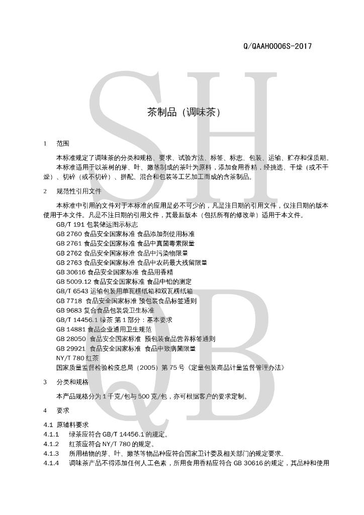 Q/QAAH 0006S-2017 茶制品(调味茶)