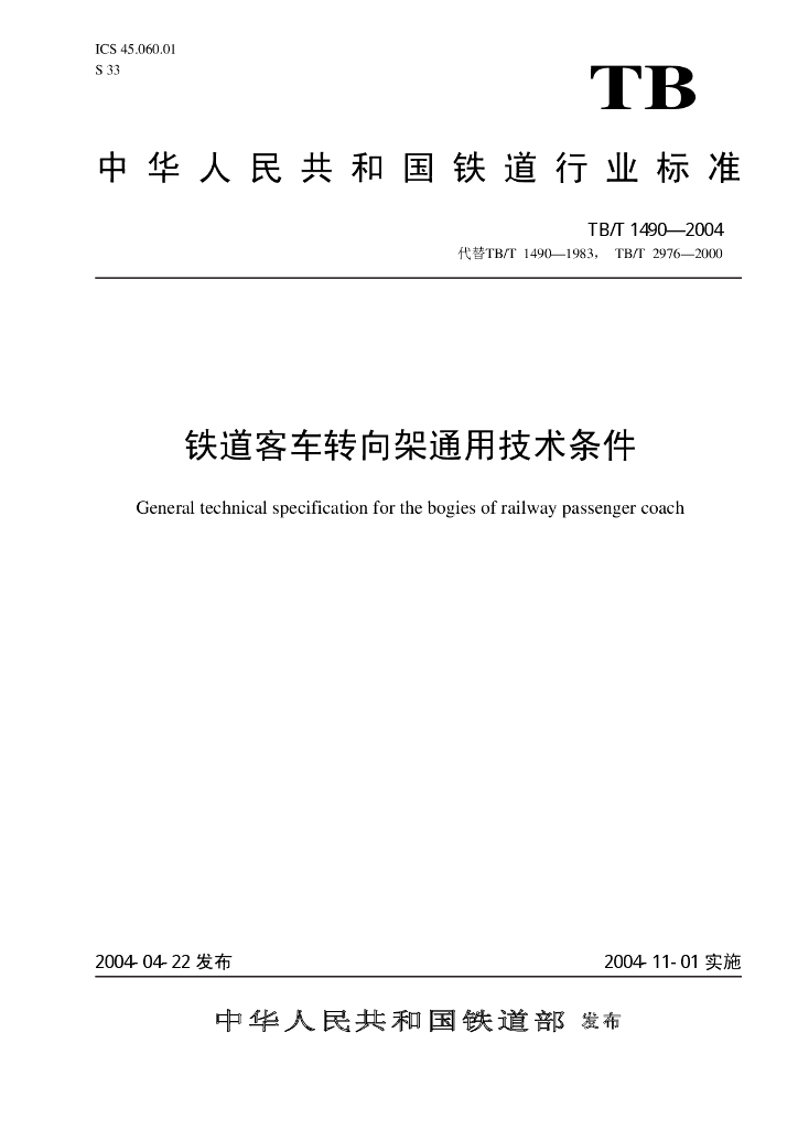 TB/T 1490-1983;TB/T 2976-2000