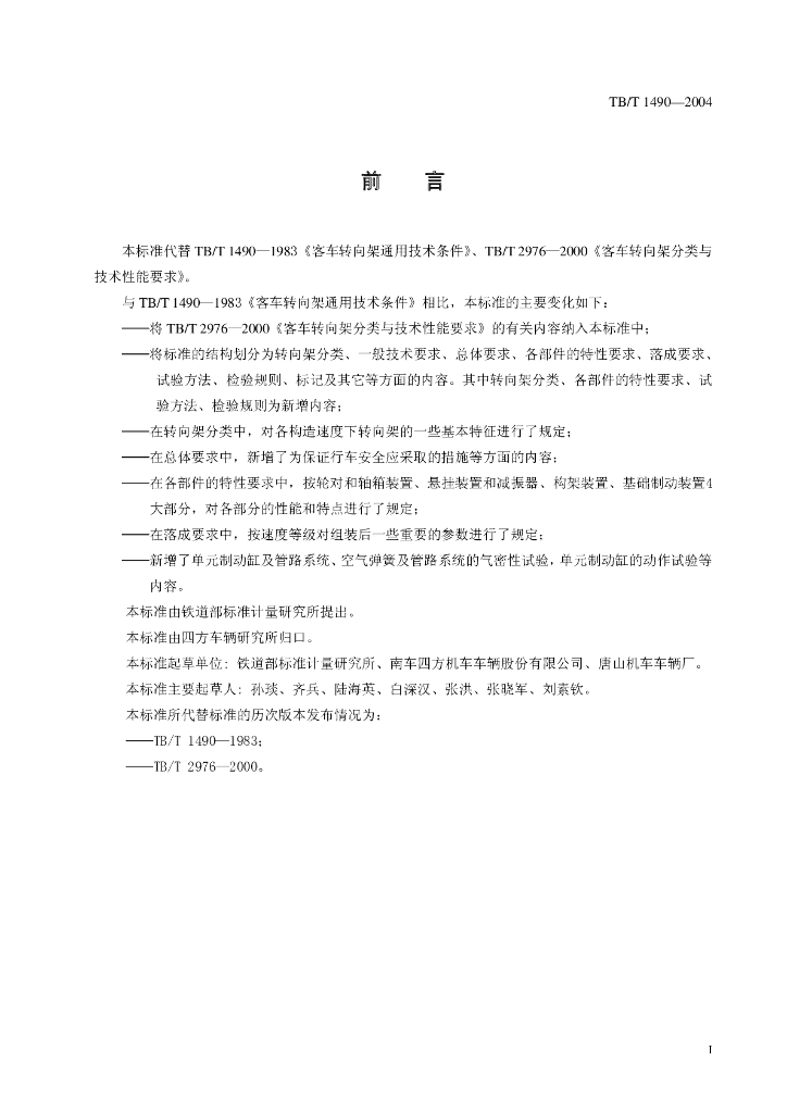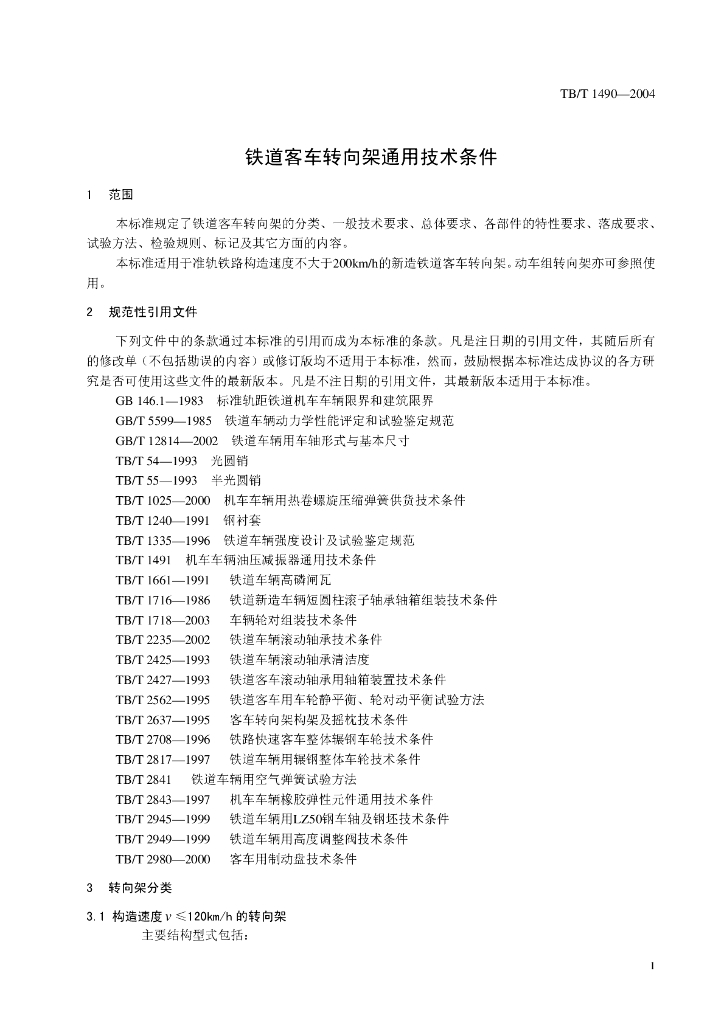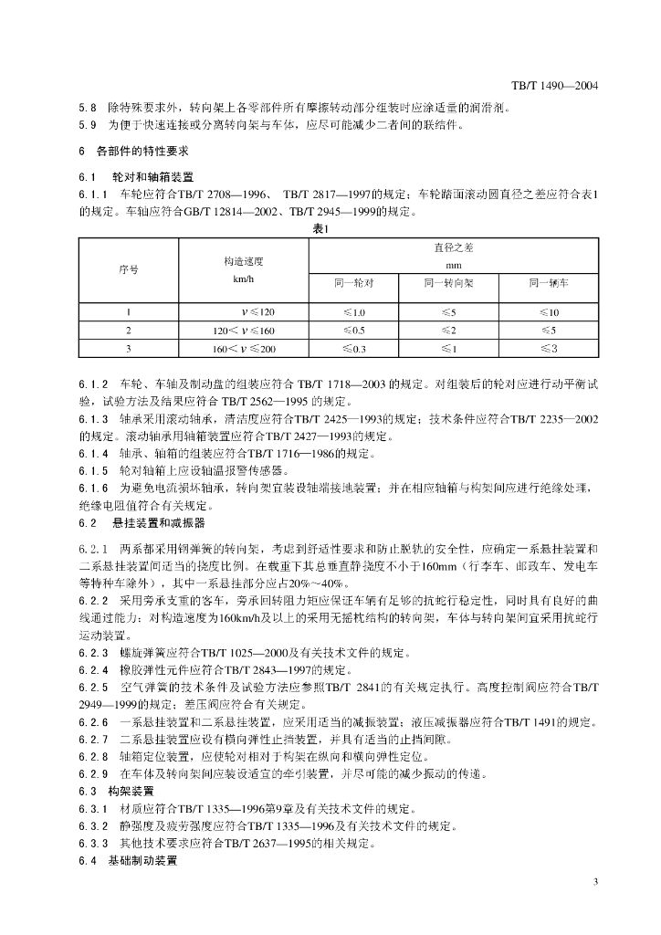 TB/T 1490-2004 铁道客车转向架通用技术条件