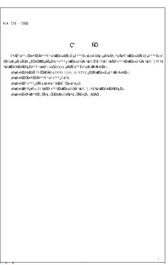 GA 174-1998 基于DOS的信息安全产品评级准则