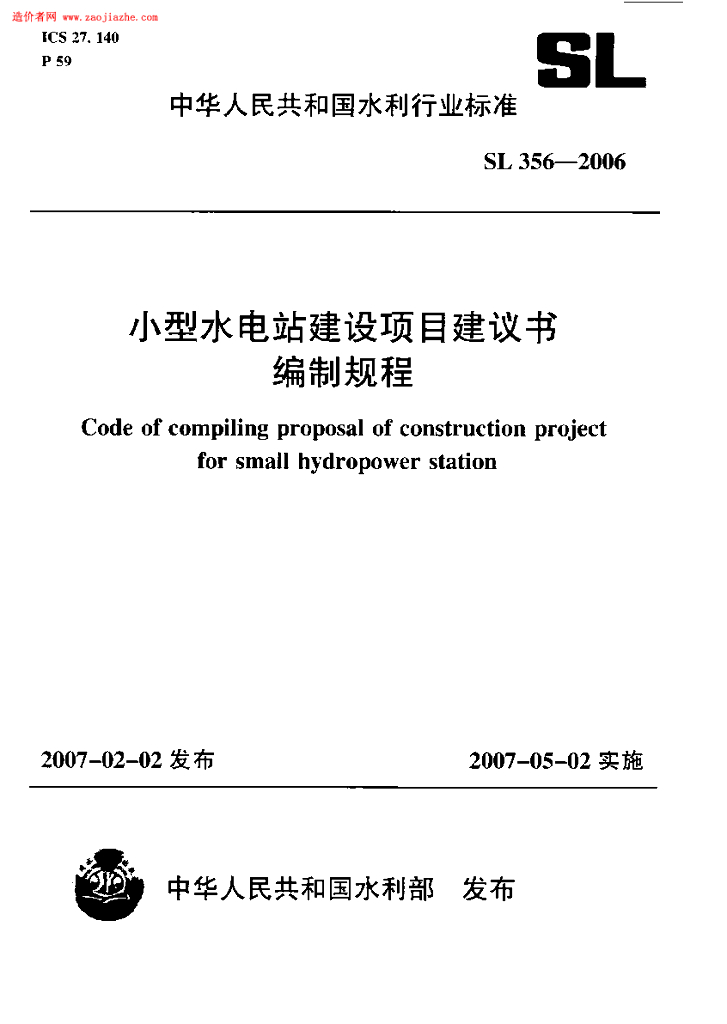 SL 356-2006 小型水电站建设项目建议书编制规程
