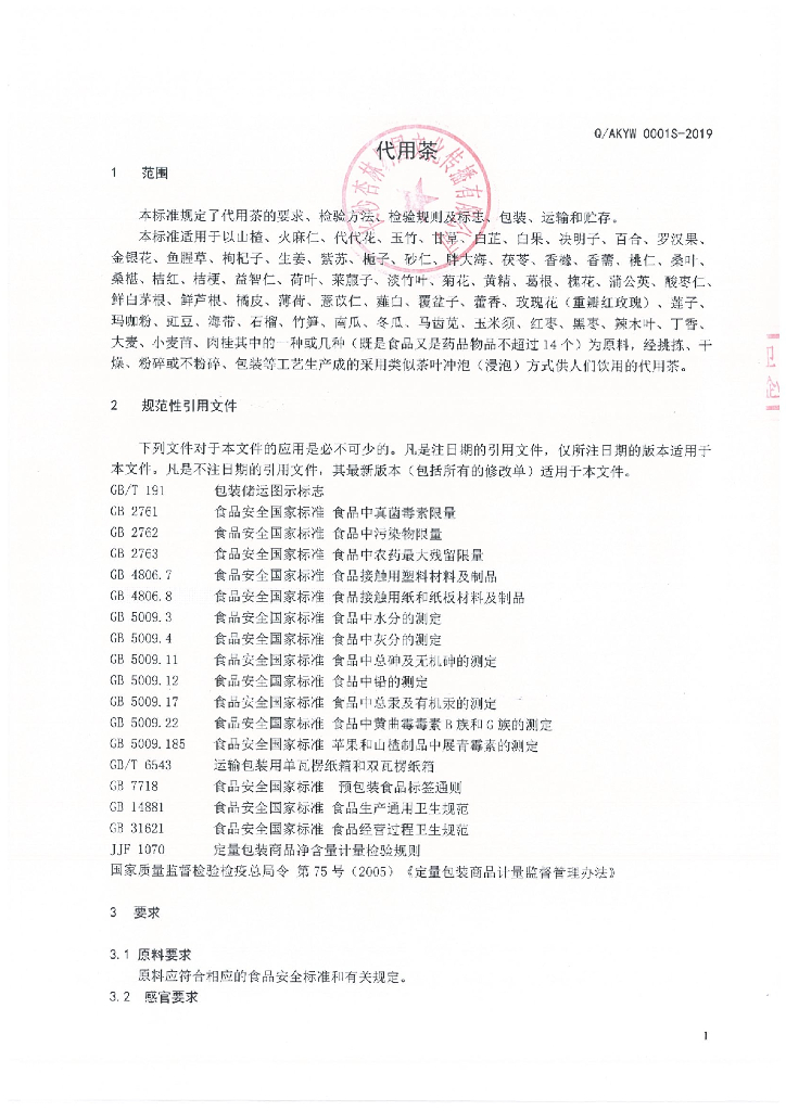 Q/AKYW 0001S-2019 代用茶