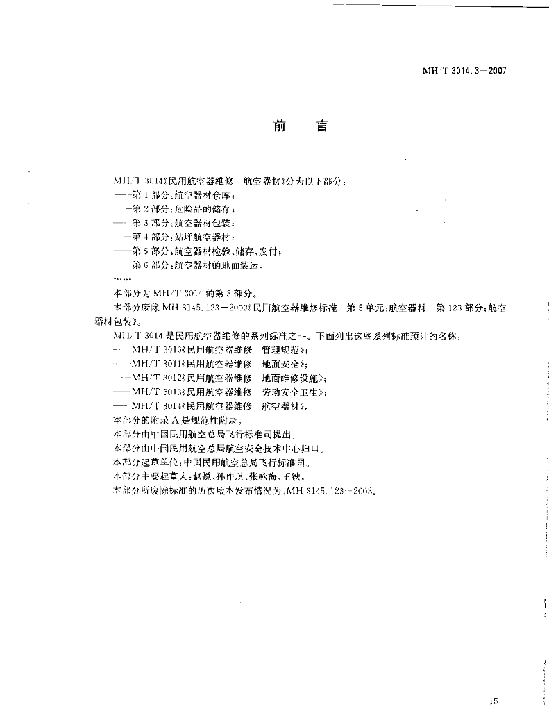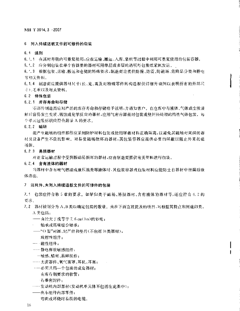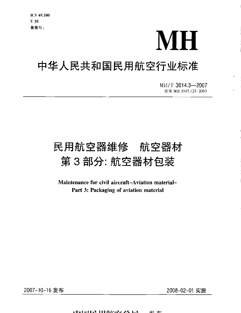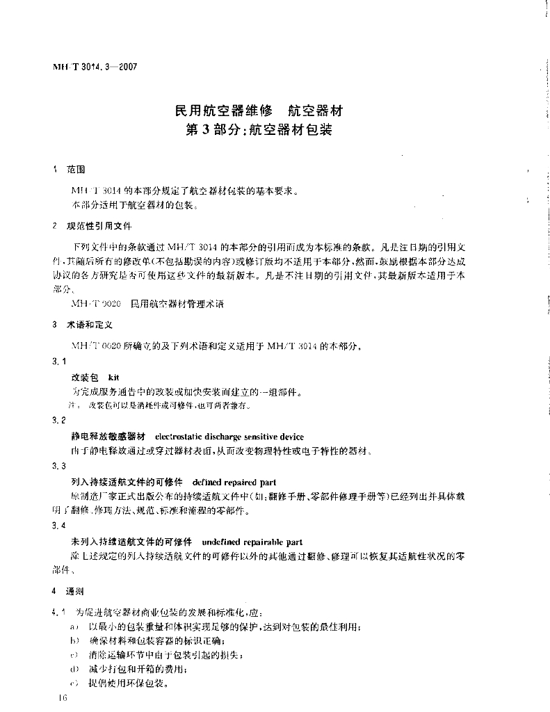 MH/T 3014.3-2007 民用航空器维修 航空器材 第3部分:航空器材包装
