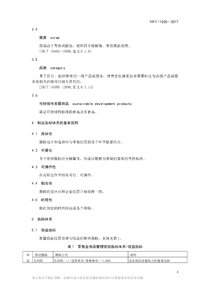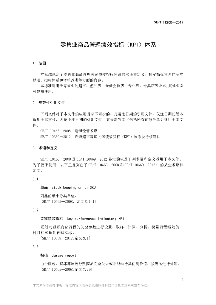 SB/T 11200-2017 零售业商品管理绩效指标(KPI)体系